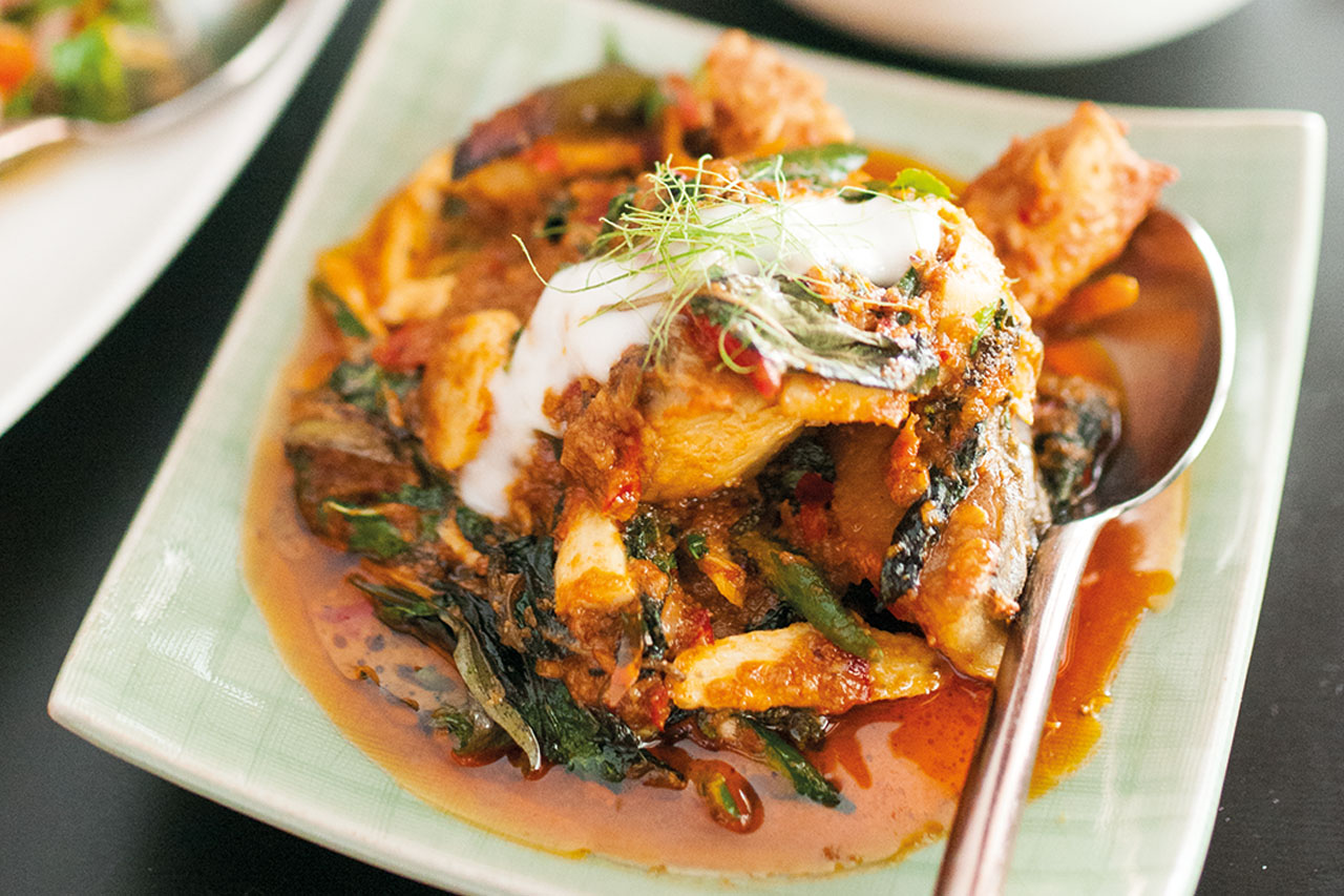 オーストラリア人とタイ人のシェフによる“タイ料理の本質を追求”した料理は、契約農家から仕入れるオーガニック野菜をふんだんに使い、奇をてらわず、タイ料理の真髄を静かに伝えてくれる。デートにも最適な雰囲気の一軒家レストランで、夜はコースのみ(2,680B~)。 ボーラーンTEL:02-260-2962