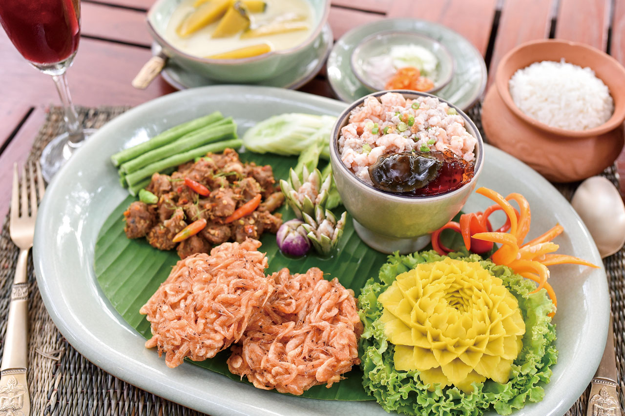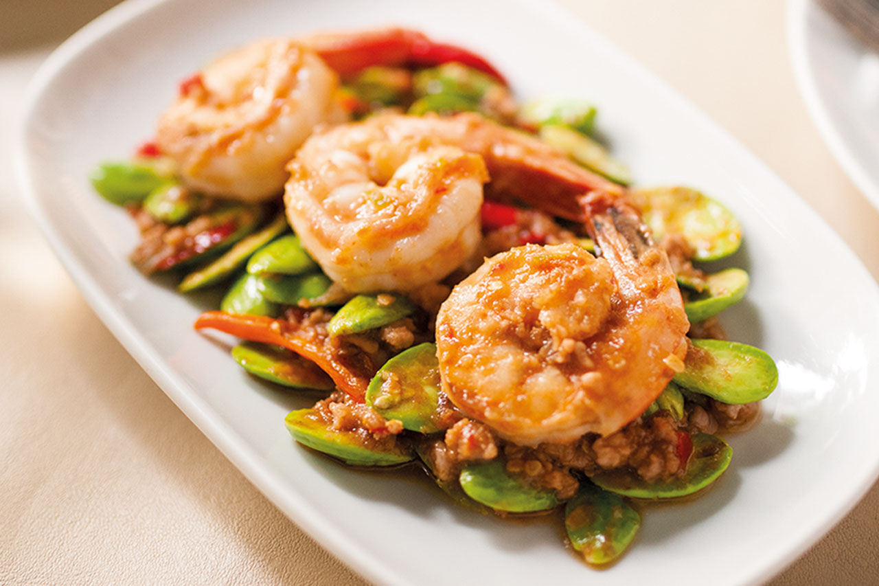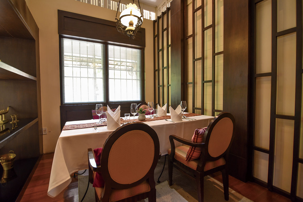 築70年の趣ある邸宅を改装し、アンティーク雑貨で彩られた空間が客人を温かく迎えてくれる。オープン以来30年、変わらぬ味とサービスで評価を高めてきた。個室を3部屋備え、日本からの出張者や家族をアテンドする際の定番店として、駐在員の間でも知名度が高い。日本人に人気のメニューは、新鮮で大振りなザボンを贅沢に使ったヤム・ソムオー、舌の上でとろける食感が楽しめるパネーン、天然物の川海老に絶妙な火入れをしたクンメナーム・ヤーンなど。いずれもオーソドックスなメニューながら、口に運べば、食を愛するオーナーの哲学がひしと伝わってくる。