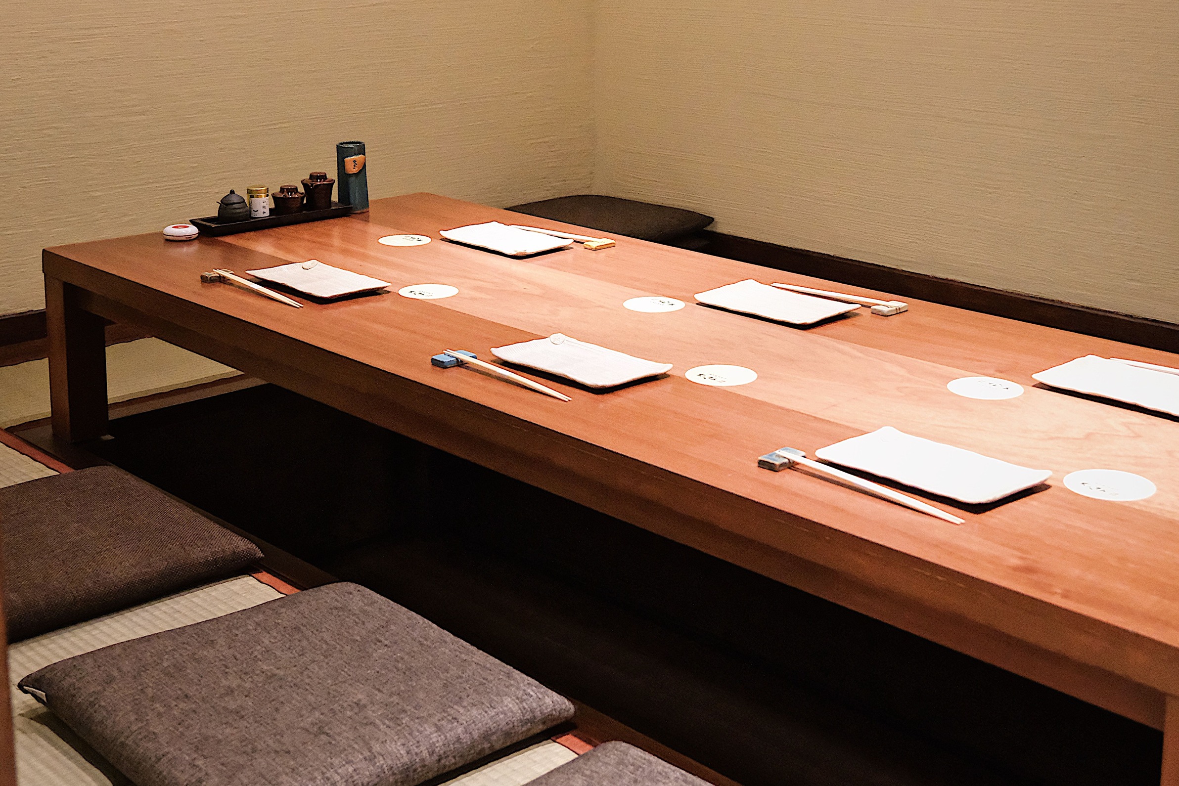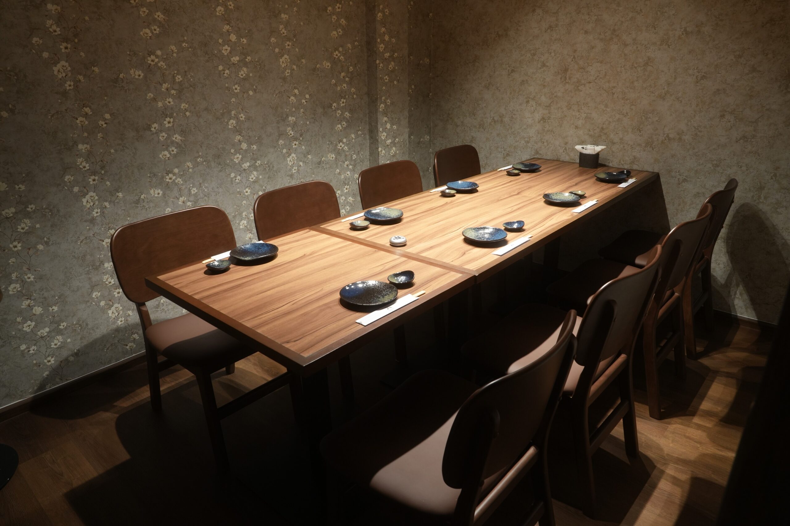 少人数でも大人数でも利用可能な完全個室を5部屋完備。会食・接待に使い勝手良し