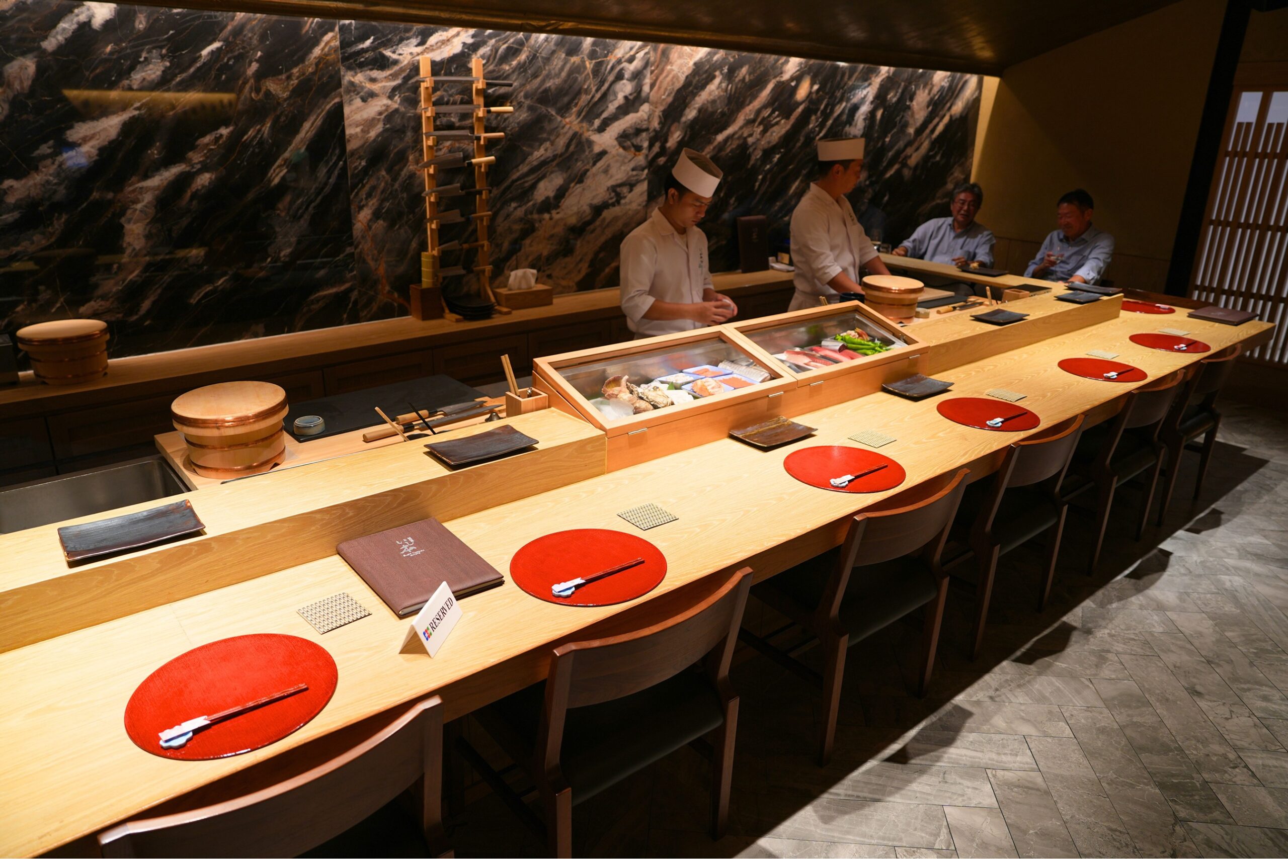 日本の旬を味わう贅沢なひととき お客様のひとときを日本の旬で彩る鮨割烹が、ホテル日航3階にオープンした。その道15年、日本を代表する老舗料亭「なだ万」で修行経験もある鮨職人が握る寿司は、全てのネタを日本の有名産地から仕入れているという徹底ぶり。「ネタには絶対的な自信がある」とシャリにはあえて白酢を使用し、質の高いネタを活かした寿司を王道のスタイルで提供している。個室でゆったり楽しむのも良いが、カウンター席で職人技を間近に感じるのもおすすめだ。アラカルトも充実しており、常陸牛いちぼの西京味噌焼き(790B)は、西京味噌で漬け込んだ赤身肉の旨味が際立つ一品。日本酒は30ミリから注文可能で、季節ごとに変わる日本の旬を味わえる贅沢な時間が楽しめる。