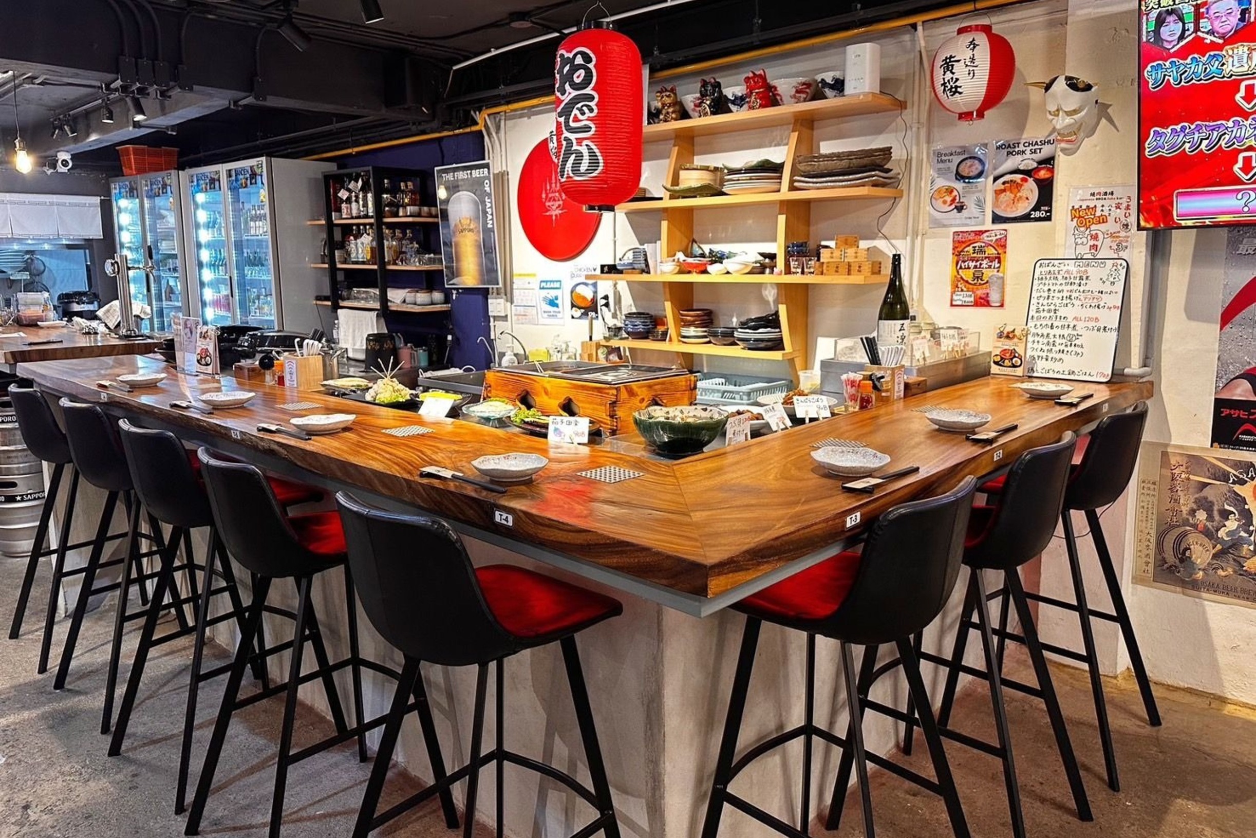 頭上のメニュー札が存在感を放つカウンター