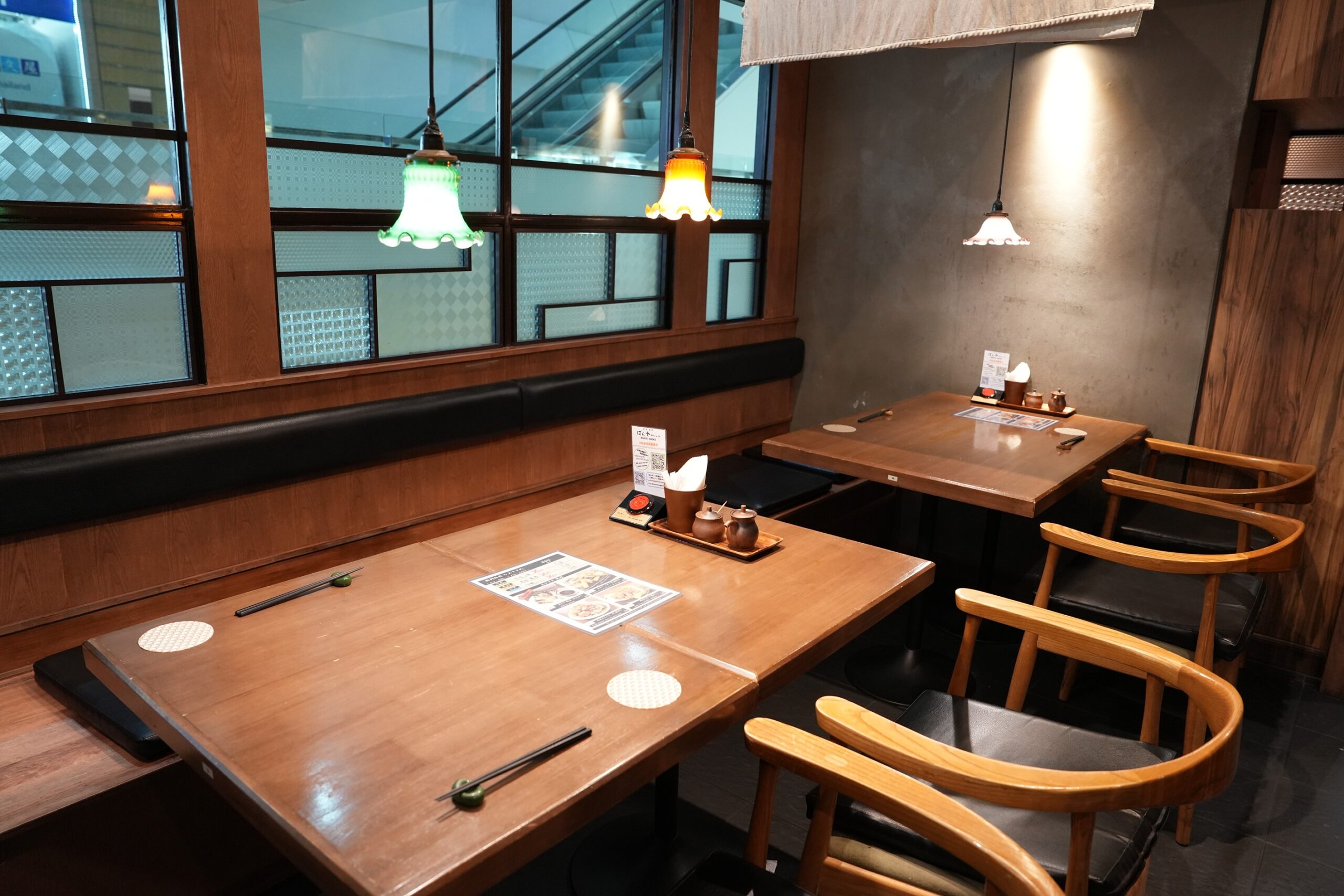 ゆったりと座れるテーブル席。個室も完備