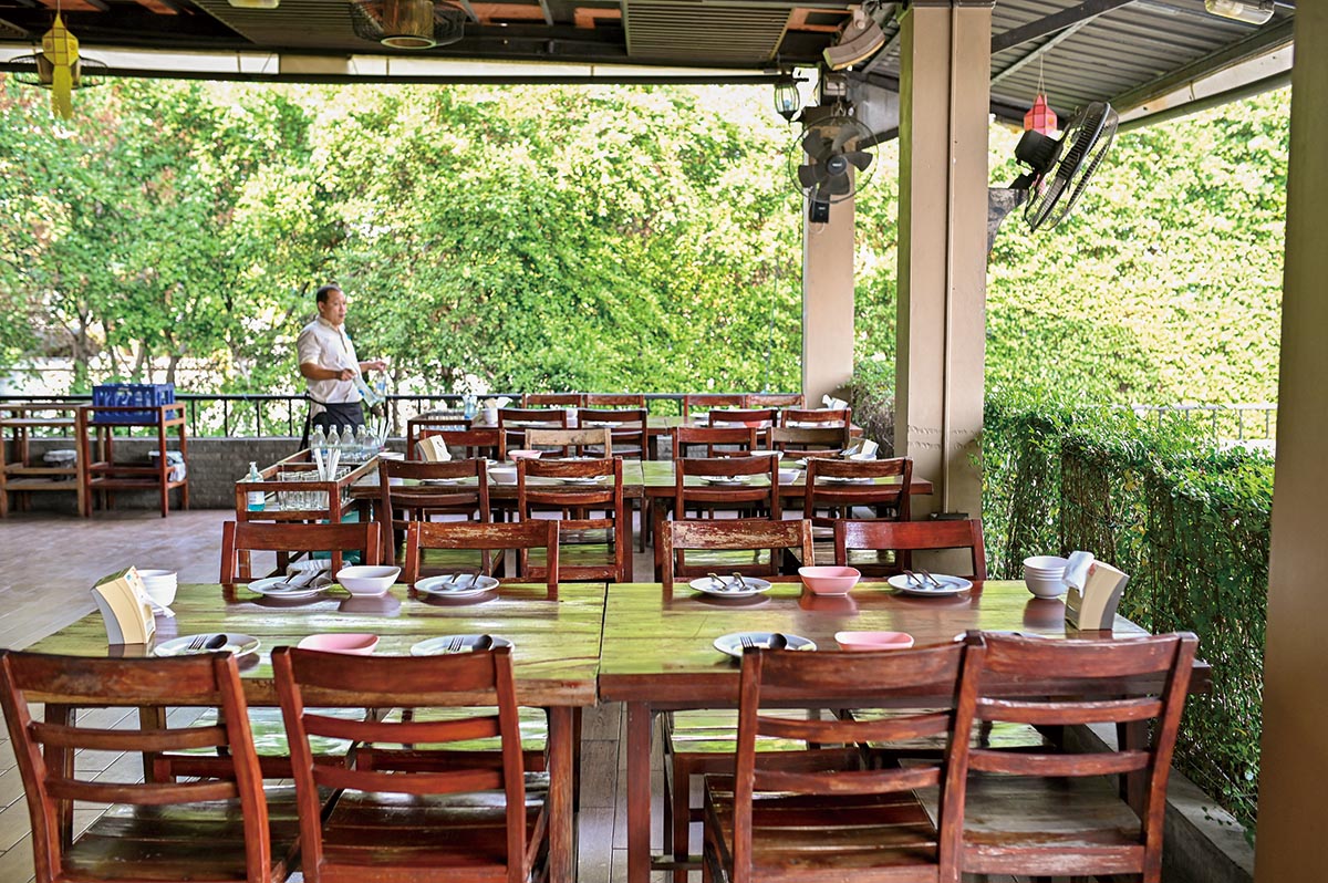 池をぐるりと囲う北タイ、バリ様式の建物や美術系大学出身のオーナー自らが収集したアンティークでデコレートされた店内はまるでテーマパークのよう。バンドの生演奏もあり、多国籍なお客さんで賑わうレストランです。