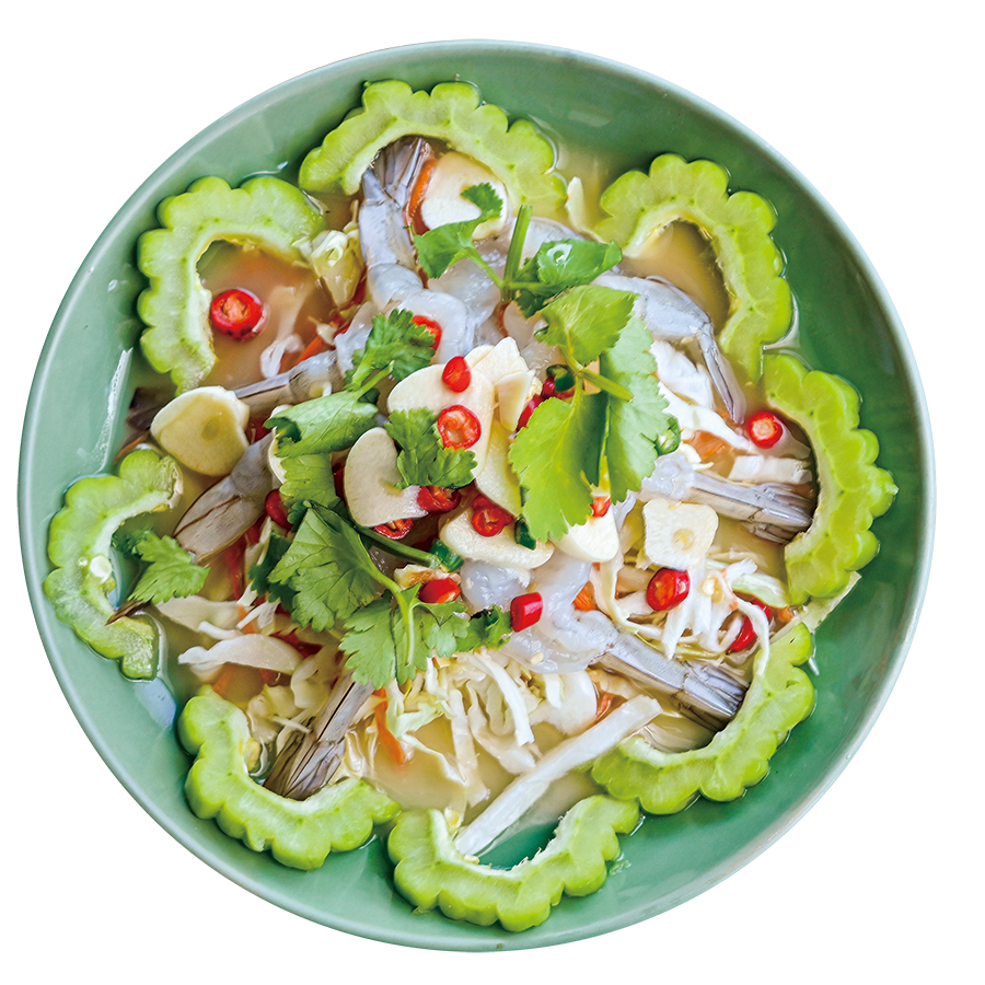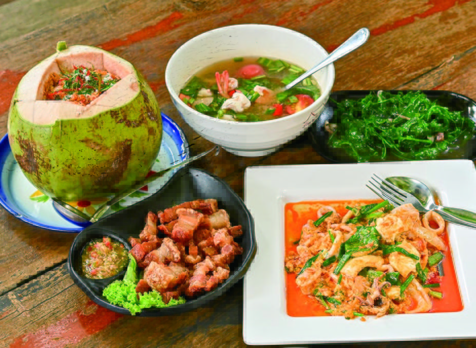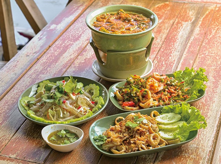 メニューに並ぶ料理はどれも中部タイ料理でバンコクで暮らす人には馴染み深い味。特筆すべき料理のひとつ、ミヤンカム・プラーガポンはオーナーが生み出したオリジナルレシピだとか。一度お試しあれ。