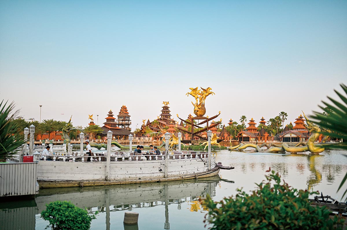 東京ドーム1.5倍の敷地に1200席以上を構える空港周辺エリア最大級のレストラン。中央の池のほとりに設置されたボートを形どったテーブルでタイ南部のシーフードなどを楽しめます。