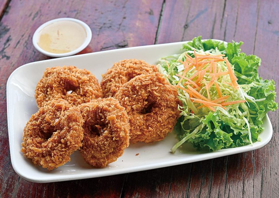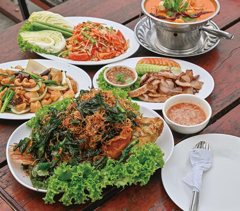 メニューは主にタイ中華で、おなじみの料理が揃いますが特にシーフードは人気。南部から取り寄せた新鮮な蟹や海老などの魚介類のほか、カンチャナブリ産のレッドテールナマズなども味わえます。テラス席のほか、大人数で利用できる個室もあり送迎時以外にも社内の決起、慰労会などにも使えますね。お酒持ち込み無料です。