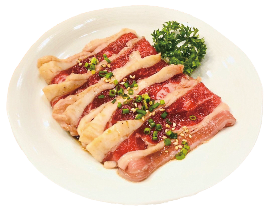 誰もが苦戦を強いられた牛タン×ネギ問題に終止符を打つ、ネギ塩牛タン(220B)。薄切り仕上げの牛タンはさっと炙るとすぐに香ばしく、別皿の刻みネギをくるりと巻けば、肉汁もネギの旨味も余すことなく堪能できるスグレモノ。特製の塩ダレが絡むネギは妙にクセになる味で、これだけ追加でおかわりしたくなるほど。