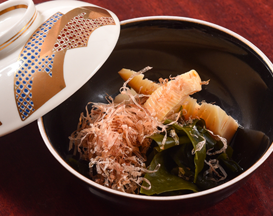 京都に春の訪れを告げる食材、筍。かつお節とワカメが引き立てる筍の香りとこりっとした食感はまさに日本の伝統の味。大の樹は日本の旬を感じられる京料理がたくさん!