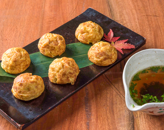江戸後期から食べられている明石焼きは、たこ焼きのルーツなんだとか。卵がたっぷり入った生地はふんわりトロトロ。丁寧にとったダシ汁と一緒にツルリと味わいます。