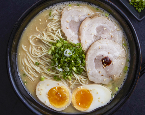 飲んだあと無性に食べたくなるのが豚骨ラーメン。長時間煮込んだ白濁スープに、チャーシュー、卵。ズズッとすすって全欲求を満たしてください。