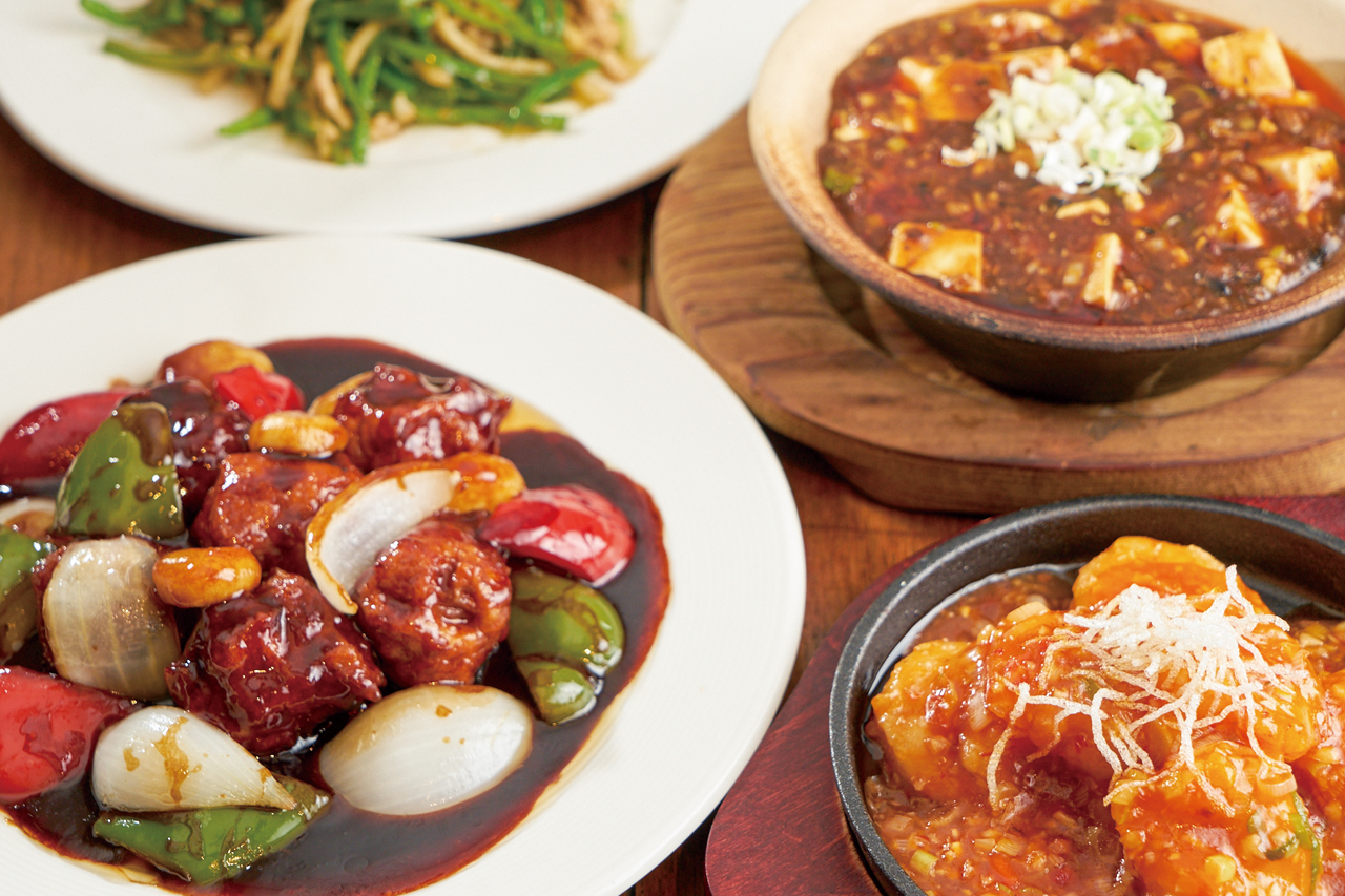 前菜は70B〜とリーズナブルな価格も嬉しい。なかでも、黒酢を使った「黒酢豚」は、芳醇な黒酢のコクと酸味がクセになる必食メニュー。
