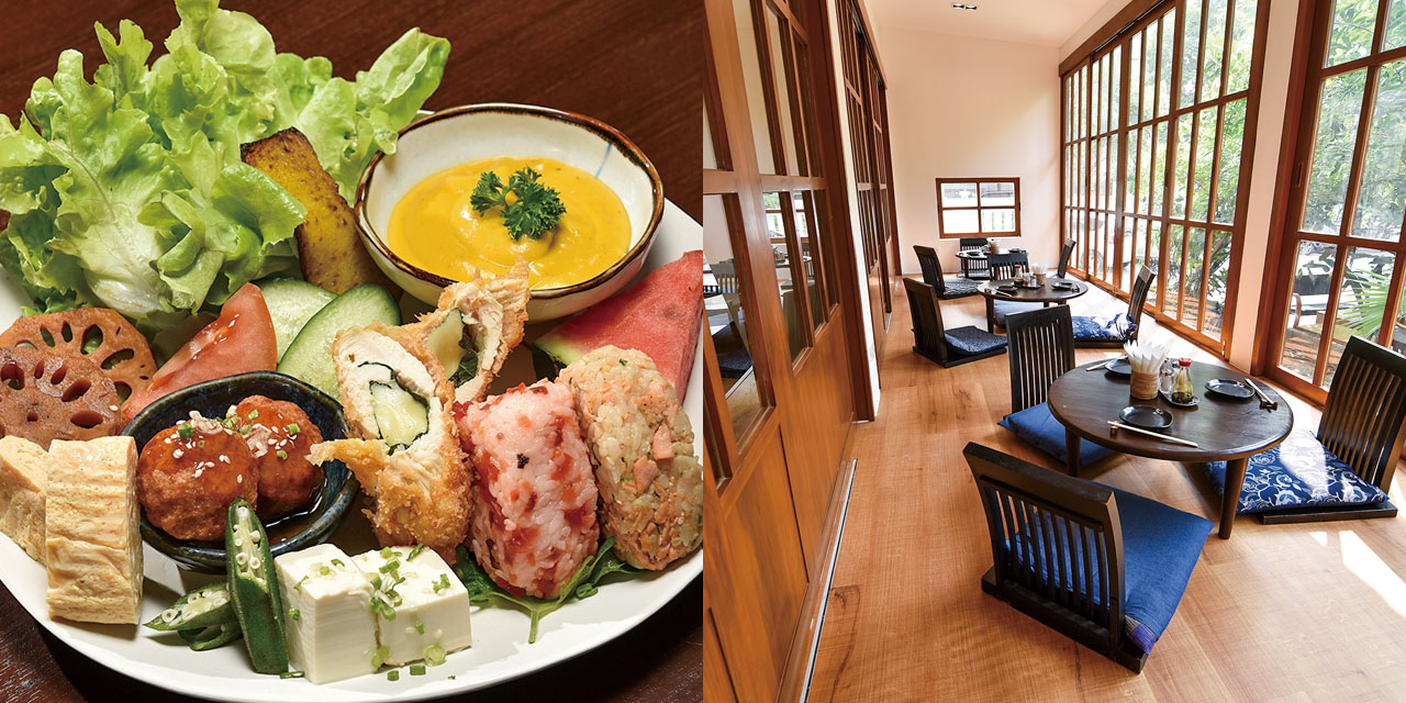 このたび新しくメニューに加わったのは、ざる豆腐の冷奴、出汁巻き、れんこん、トマト、スープ、サラダ、スイカがセットになった「和ンプレート」(100B)。こちらをベースに、肉や魚のメインディッシュ、寿司やおにぎりなど11種類以上のおかず(一品50B~)を組み合わせて、自分だけのランチプレートを作ることができる。いずれも飽きのこない美味しさで、満足度も高い。