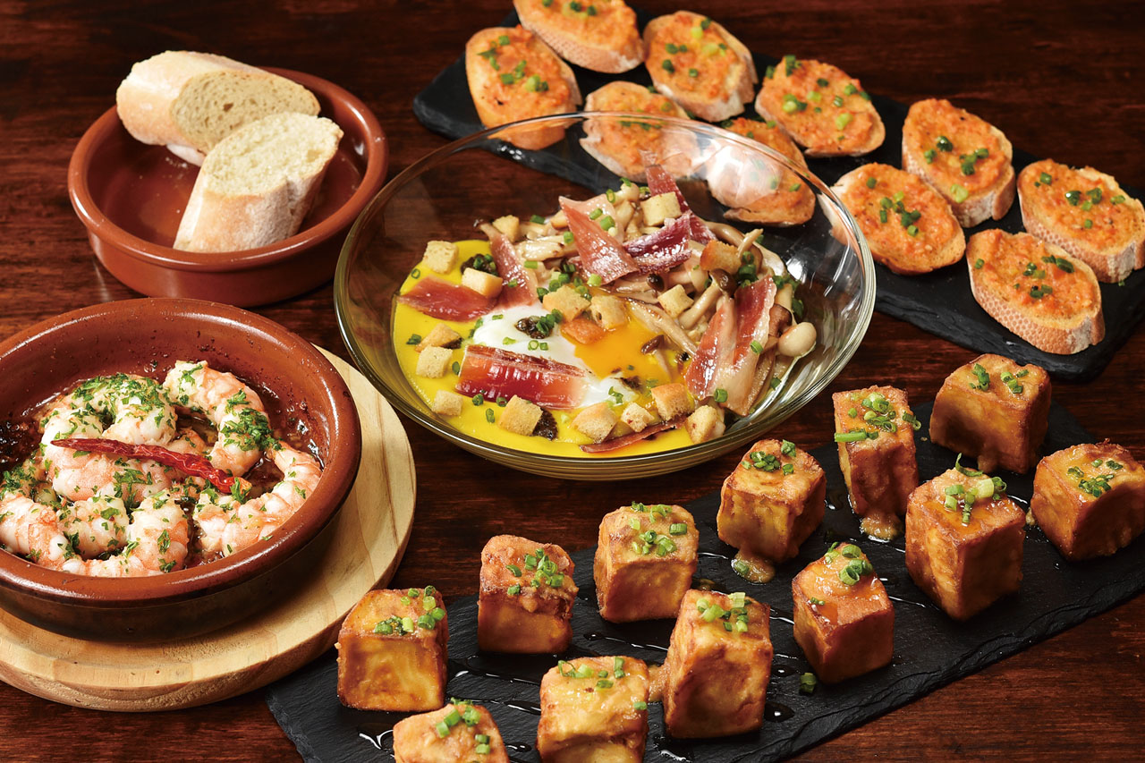 「日本人の口に合うインターナショナルなタパスを楽しみに来てほしい」と明るく微笑むスペイン人オーナー。定番のイベリコ豚の生ハムや海老のア ヒージョはもちろんのこと、茄子のハチミツ味噌和えも日本人に人気だそう。