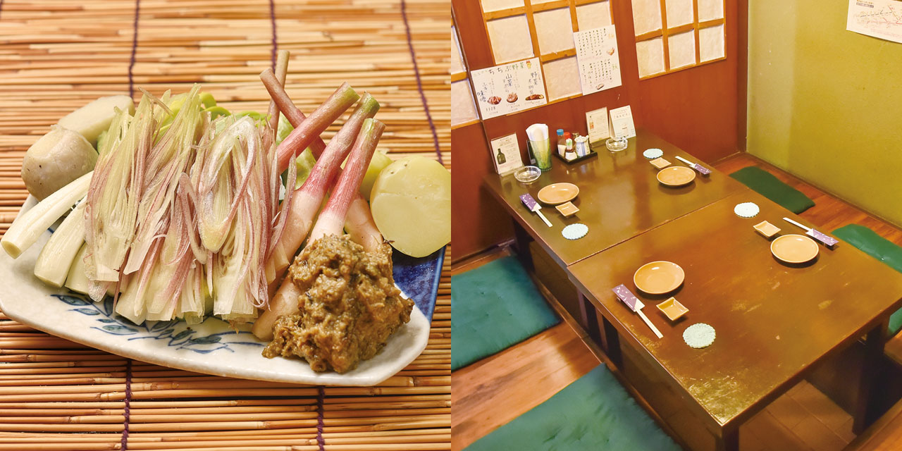 糸こんの煮つけやきんぴらなど、季節のおばんざいが並ぶカウンター席。砂壁に囲まれた、どこか実家を思わせる個室。店内のどこでも腰を下ろした瞬間「日本に帰って来た」と懐かしさがこみ上げる。 埼玉県秩父地方の郷土料理を中心に、四季折々の山や海の幸の味わいを生かした一品料理がズラリと並ぶ「ふるさと」。山菜と野菜のおかずは、食感と風味を生かすよう薄味仕立て。ほろ苦さと鮮烈な香りにノックアウトされる名物「ふき味噌」を目当てに通うファンも多い。 一年を通し、春夏秋冬の野菜が存分に楽しめるが、春の山菜が豊富に出揃った今の時期は、足を運ぶ絶好のチャンス。 バンめしWEB店舗ページ提示で、煮物盛り1人前サービス!(2019年6月末まで)