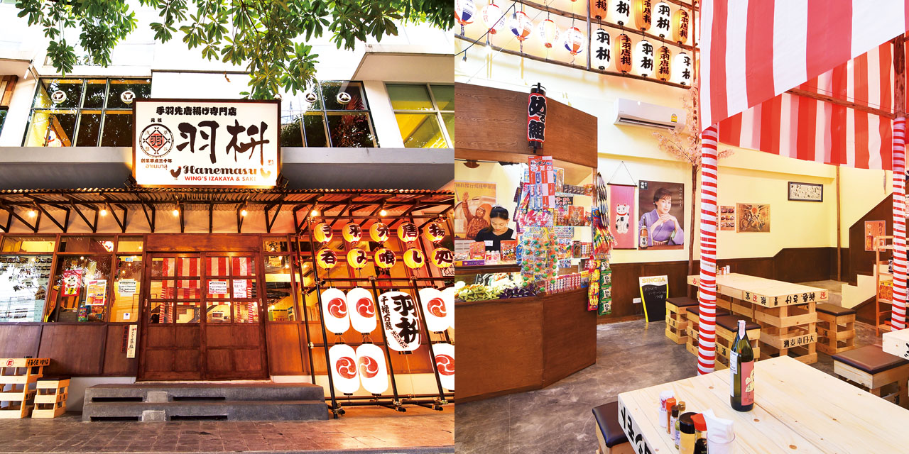 ラケットクラブの並びに、大型駐車場完備の居酒屋「羽枡」がオープン!独自の味つけがキラリと光る名物「手羽先唐揚げ」は、辛さの赤、ごまの味わいが優しい白、胡椒とにんにくが効いた黒の3種類。豪快にかぶりつけばアツアツの肉汁が溢れ出す。