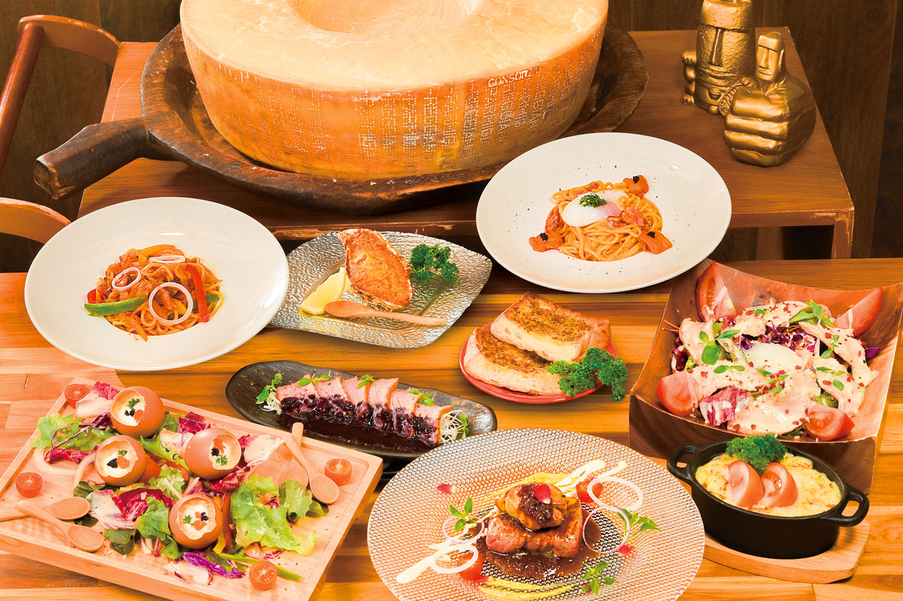 有名ホテルや料亭で修業を重ねた新進気鋭のシェフが紡ぎ出すのは、あらゆる食文化をクロスオーバーした、舌にも目にも美味しい皿の数々。大きなパルメジャーノ窯で作るカルボナーラ、塩釜で焼くローストビーフ…工夫を凝らした料理の数々が酒席を大いに盛り上げてくれるだろう。素材のポテンシャルを引き出すことにも余念がなく、肉汁を丁寧に濾して作るグレービーソースなど、細部に至るまで自家製にこだわる。