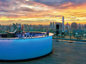 マリオットホテル45~49階。中 心部のルーフトップバーに比べると手頃な料金で空いています。
