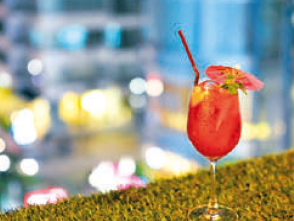 たまにはトロピカルなカクテル なんかを注文してみれば、異国にいることを思い出す。「なぎ屋」のビルの屋上です。