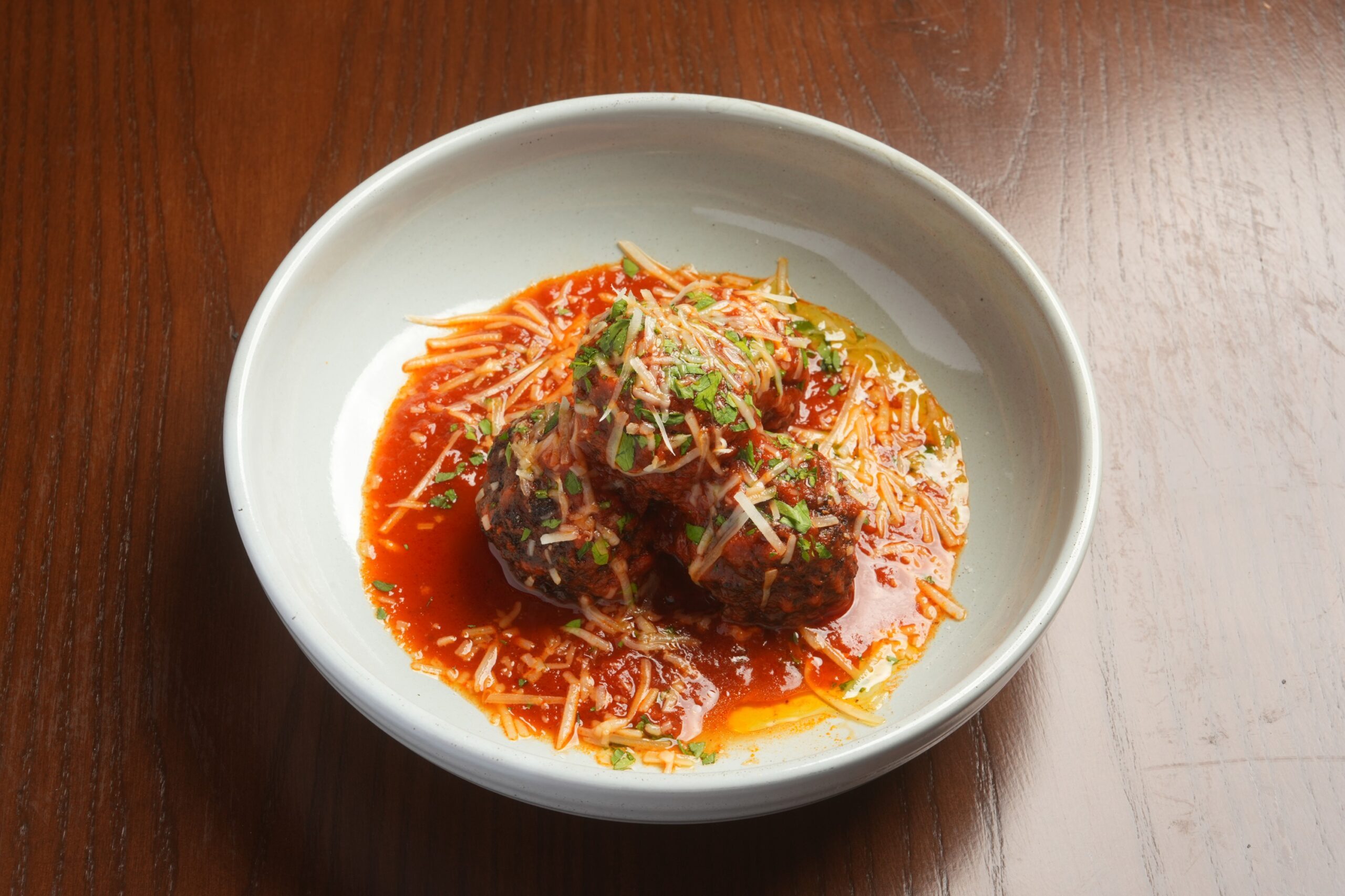 黒豚×和牛を使用した力強い味わいのミートボールを、フレッシュなトマトで爽やかに煮込んだ本格的な一品