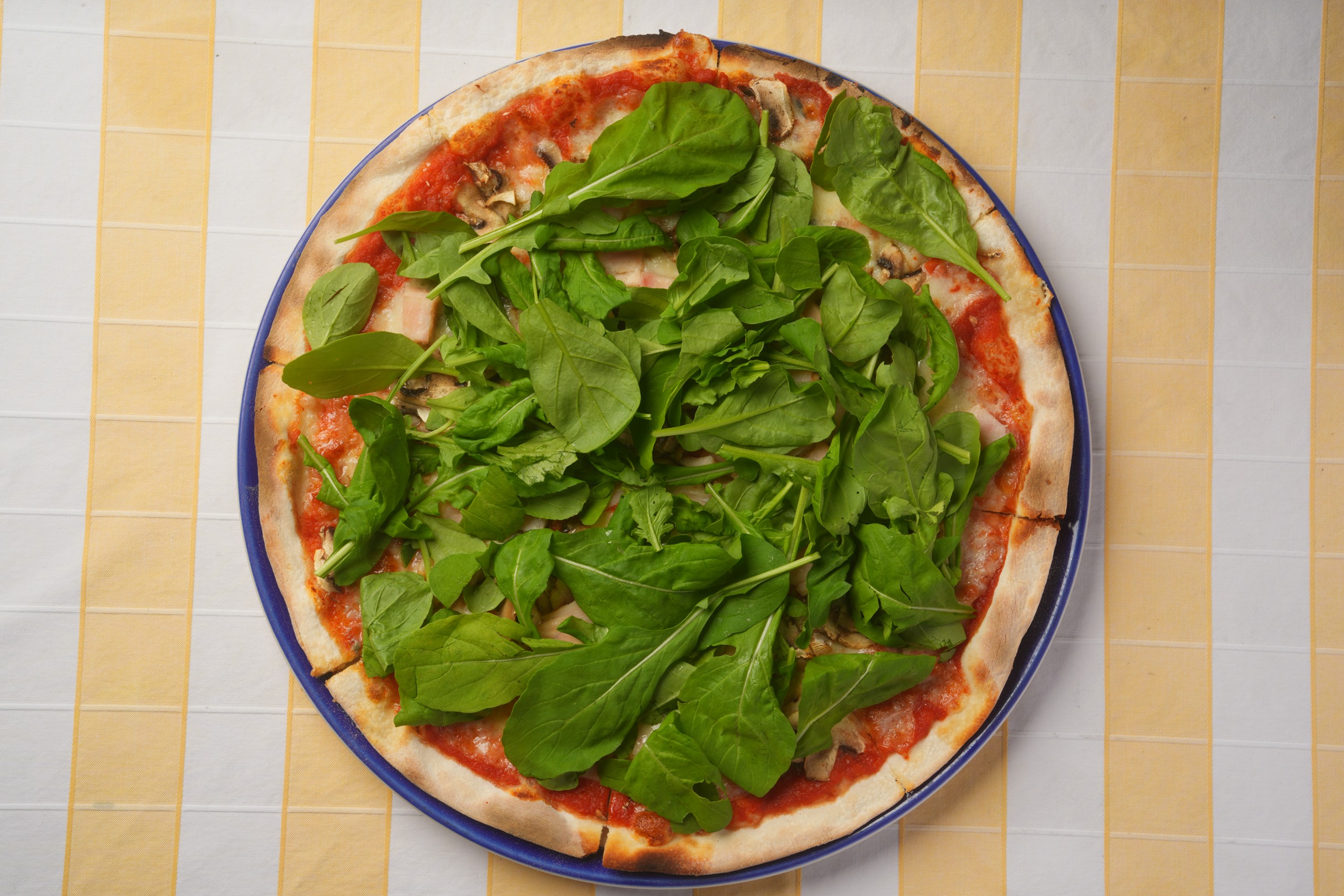ピザ定番の具材が贅沢にトッピングされた人気の一枚。仕上げにほろ苦いルッコラを添えて