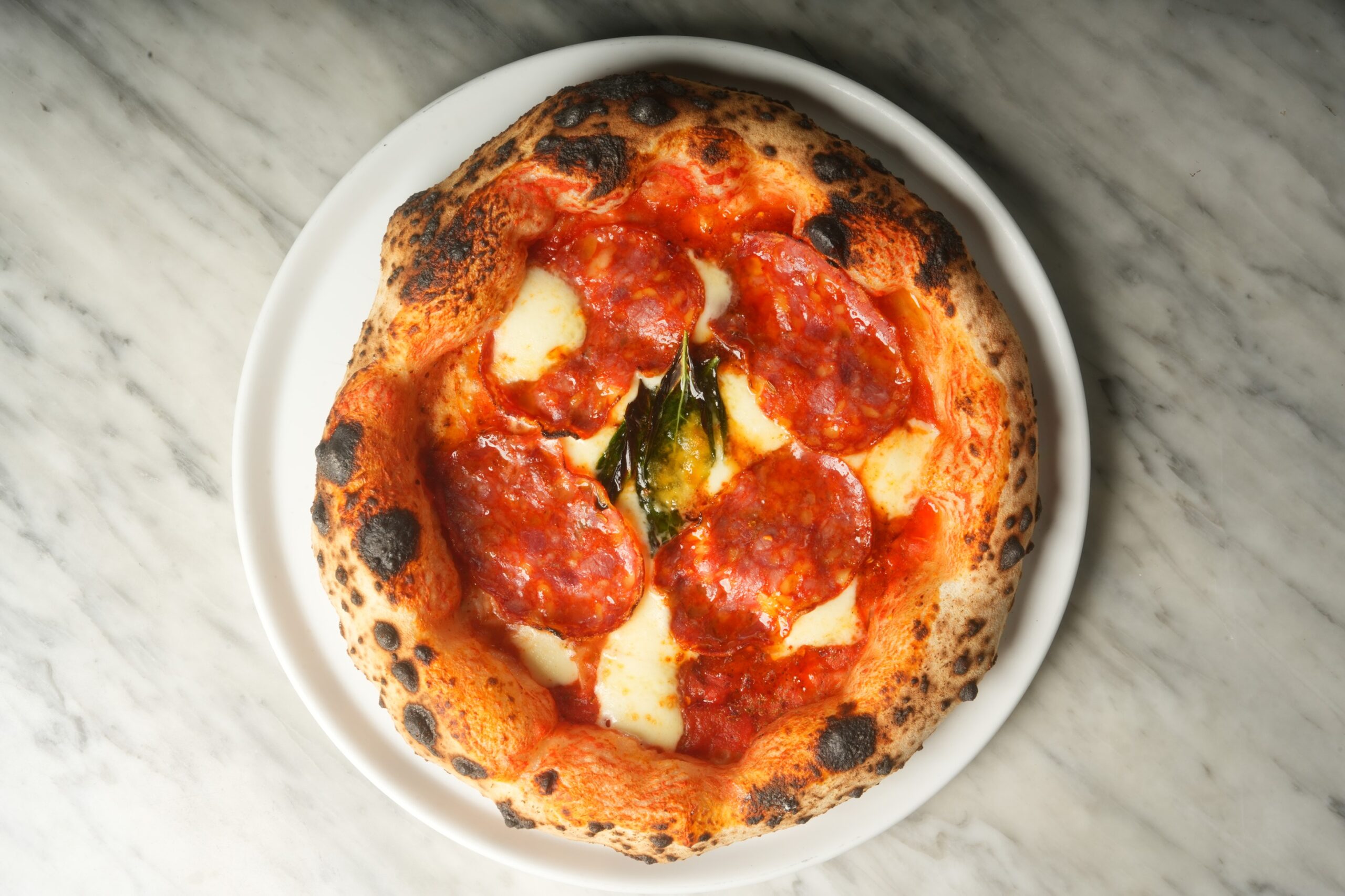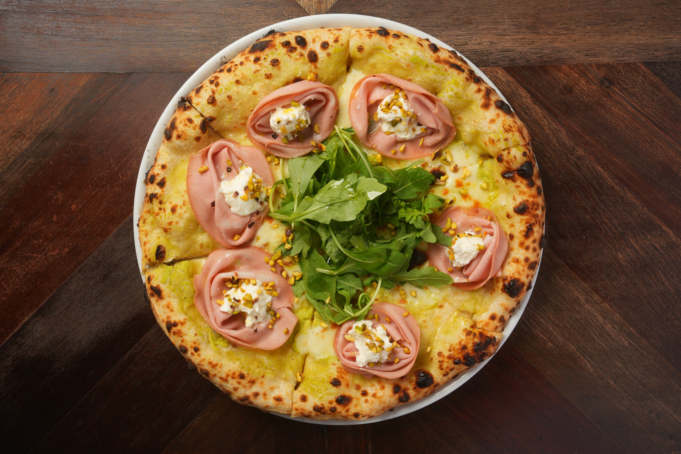 オリーブの木がシンボルの一軒家レストラン「ロリーヴァ」。その名は、イタリア料理に欠かせない“オリーブ”に由来する。料理はオーナーの故郷、アブルッツォ地方の伝統に根ざし、山と海に囲まれた土地ならではの調理法で素材本来の魅力を引き立てる。ピザ生地はサワードウのように外側が香ばしく、高品質な本場の素材を贅沢にトッピング。専属のワインソムリエも常駐しており、アブルッツォ産を中心に厳選されたワインとともに、心温まるひとときを楽しめる。 Mortadella E Pistacchio(550B)