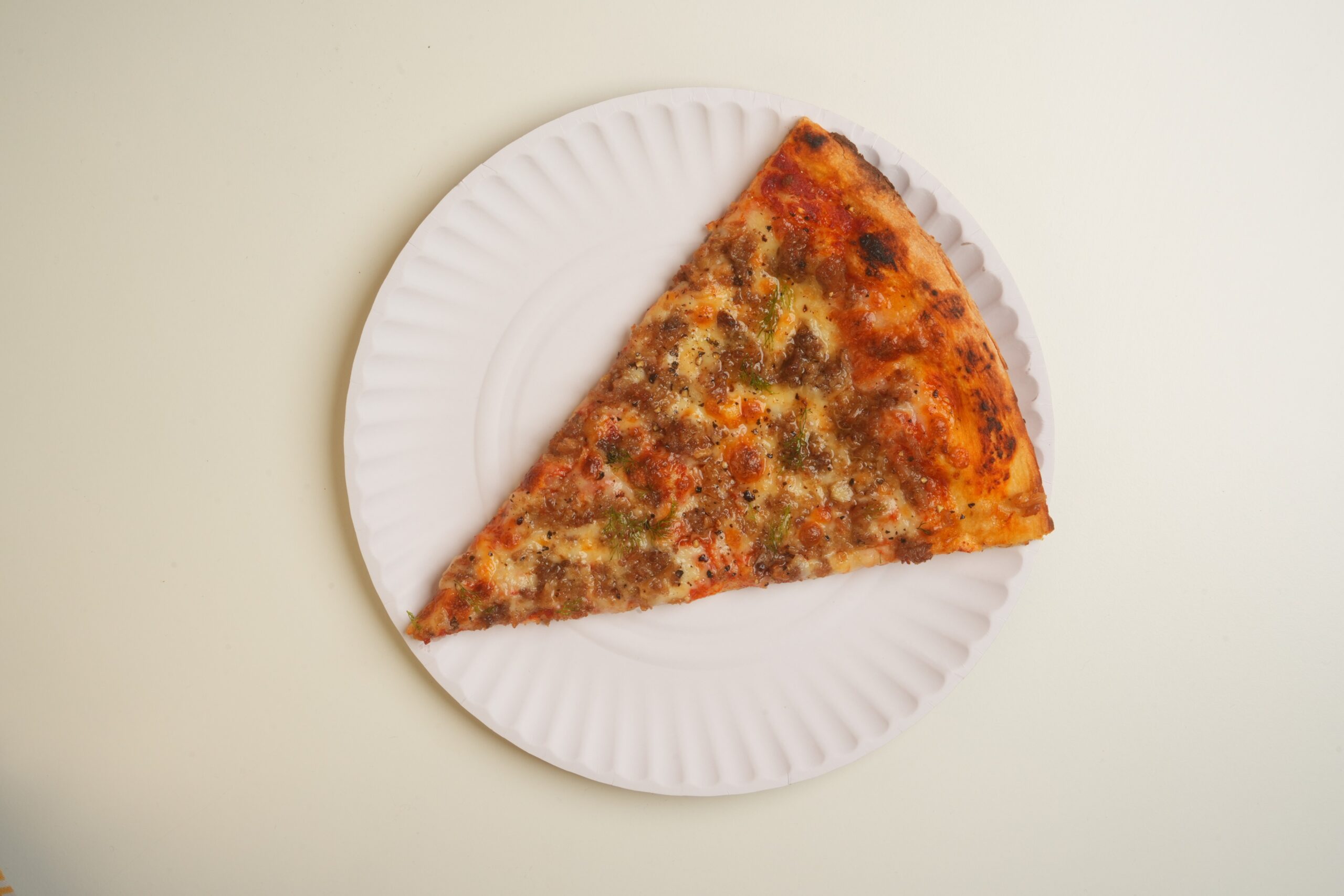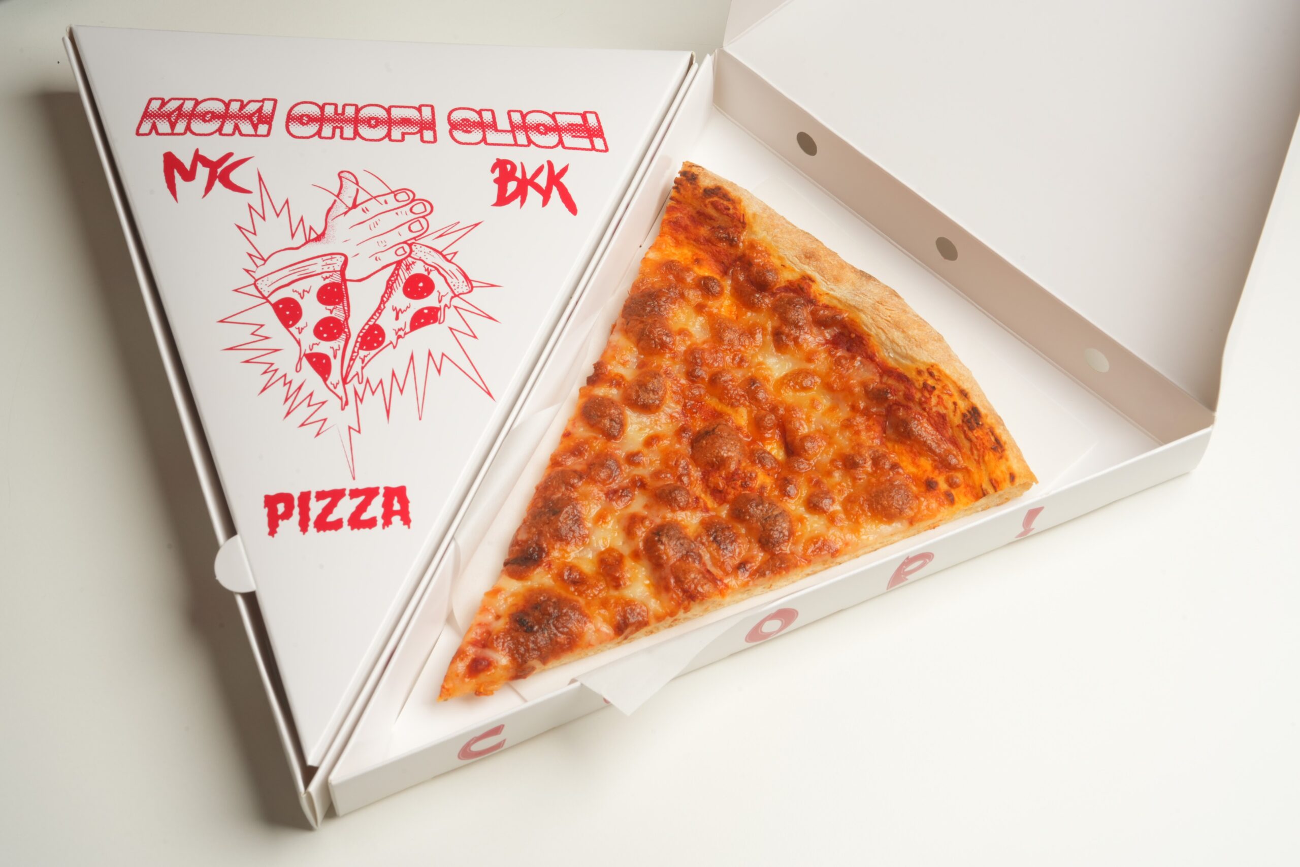 タイではまだ珍しい、ニューヨークスタイルのスライスピザ専門店。ピザは定番の4種類のみで、カウンターに並ぶショーケースから選ぶスタイルだ。サイズは1スライス9インチと特大ながら、79B〜と手頃な価格。生地は薄くサクサクで、おやつ感覚でも気軽に楽しめるのが嬉しい。ガーリック・オレガノ・トマトを使ったベースは、タイ人の味覚にも合うパンチと爽やかさを兼ね備えている。辛いもの好きの方は、スモーキーな自家製唐辛子を振りかけて召し上がれ。 Isan Beef Sausage Slice(89B)