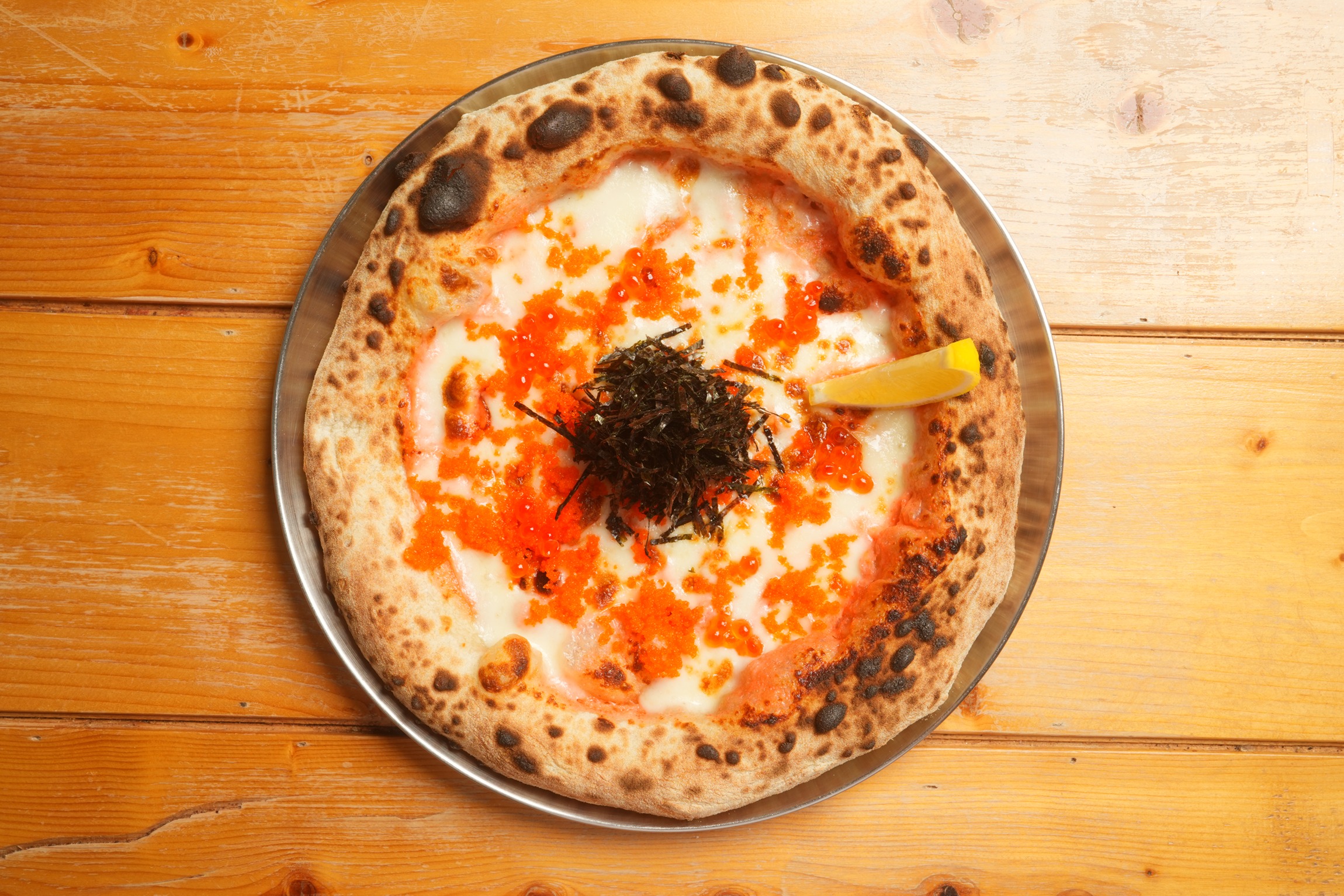 明太子ソースがベースの一枚。海苔の風味、いくらの塩気、チーズのコクが絶妙に調和する