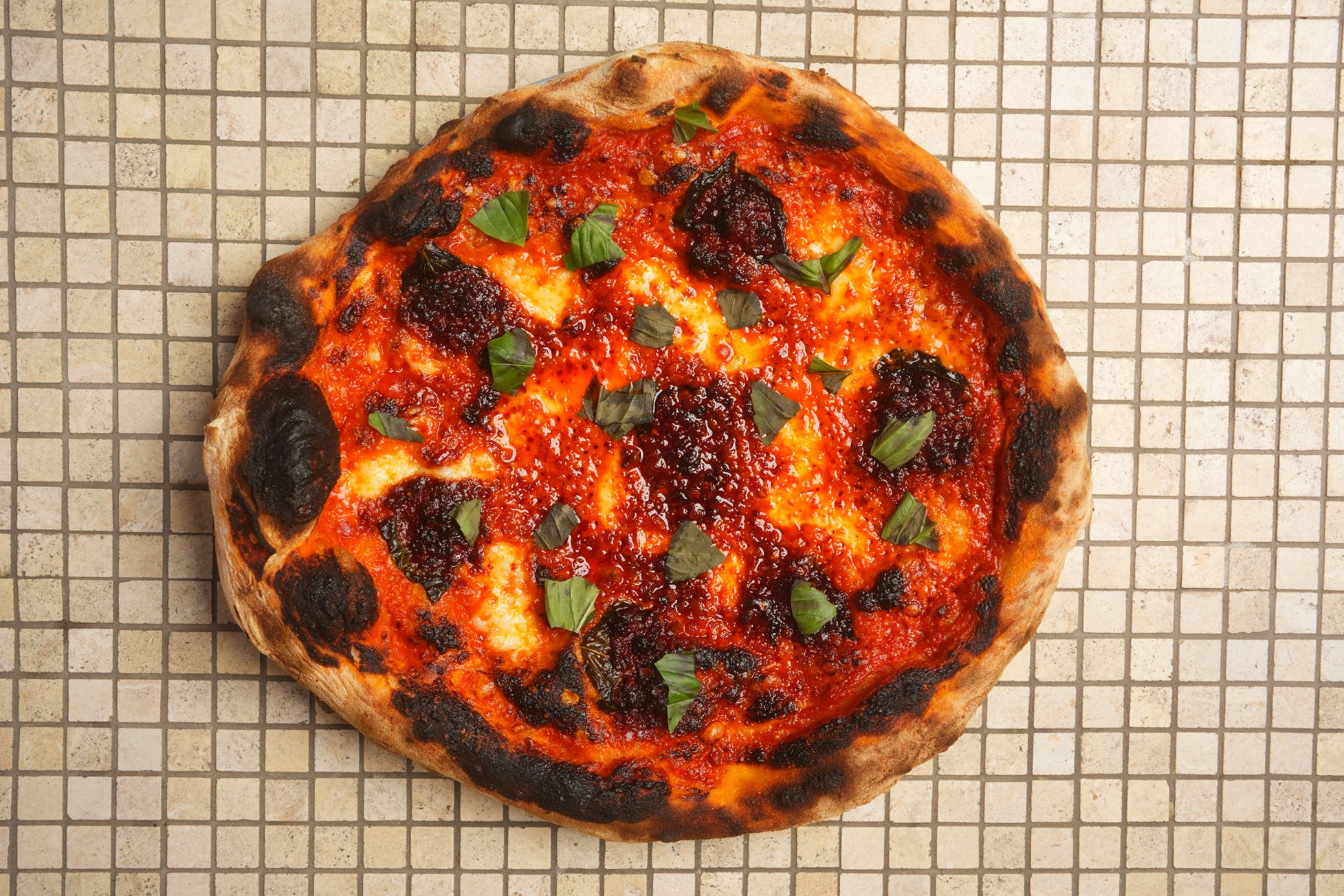 “ピザこそがコンフォートフード”という考えのもと、世界中の誰もが楽しめる普遍的な1枚を提供する「ケニーズ」。ロゴキャラクター「ケニー」は、まるで友人宅を訪れているような親しみやすいレストランを象徴している。生地にはイタリア産小麦粉を使用し、48時間かけて発酵。安定した温度管理が可能なガス石窯で、薄くソフトな生地に焼き上げる。肩肘張らずに楽しんでほしいというオーナーの想いから、価格設定はリーズナブル。友人宅に招かれた感覚でピザを楽しんで。 The Rumble(390B)