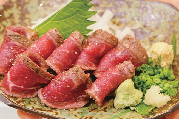 肉本来の味がしっかりした自慢のタタキを、生姜醤油で食べるのが絶品です。