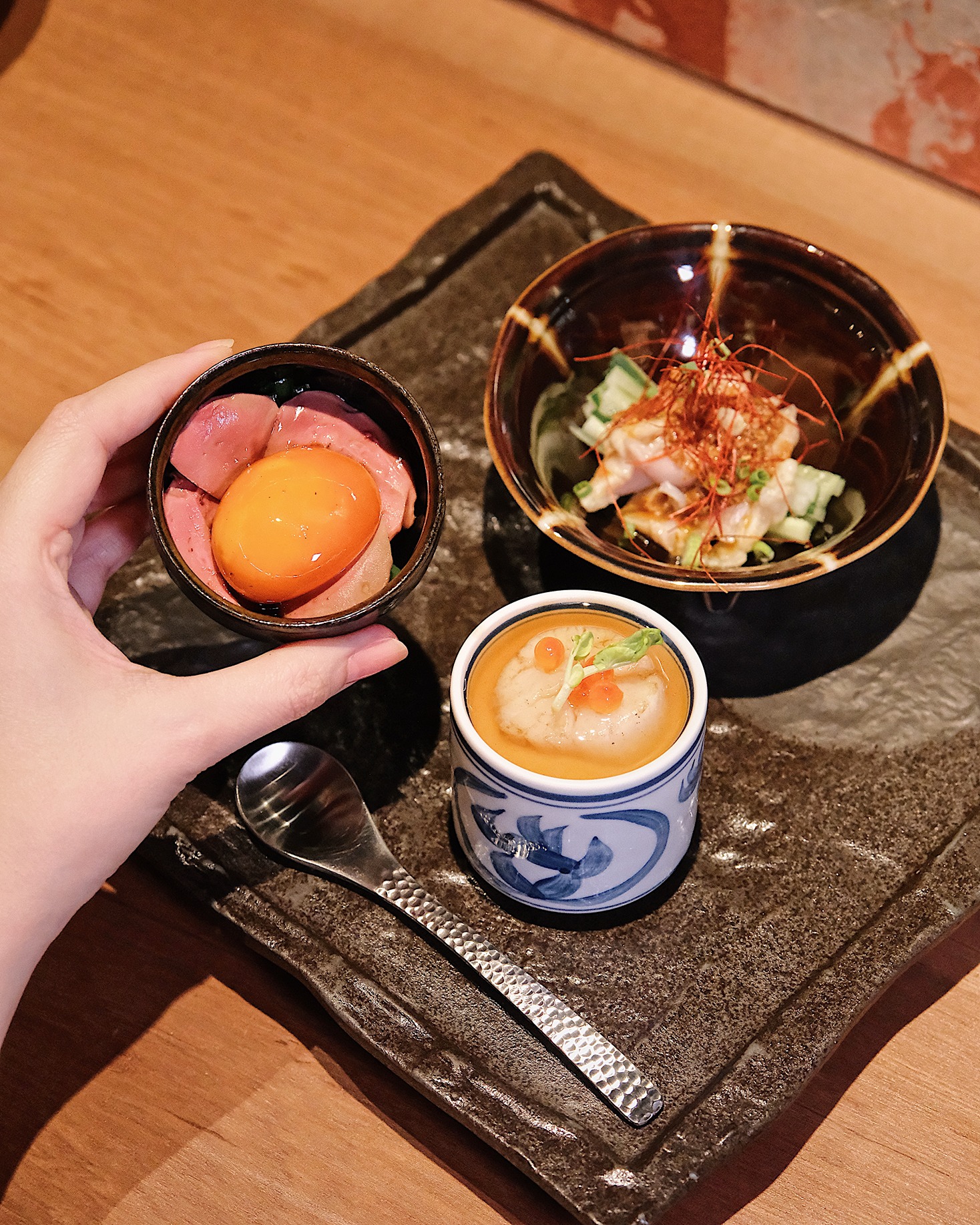 キミトキモトニラ(260B)メニューの中でも一際目を引くのが、タイオリジナルメニューの「キミトキモトニラ」だ。低温調理された極上のレバーと卵黄、そしてニラをニンニク醤油がまとめ上げる。口の中でとろけるレバーの 食 感と濃 厚な味 わいは、まさに「洗 練されたレバニラ」。わざわざ足を運んで食べたい逸品。