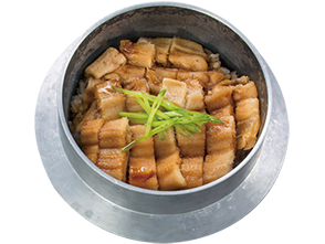 炊きたて釜飯が自慢の「ほっこり」。穴子釜飯(590B)は口どけ柔らかな穴子が一面に敷き詰められています。鯛を一匹使った「鯛の大釜飯」も人気。