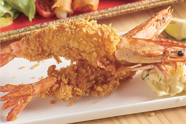 カノム・ブアンと呼ばれるパリパリの生地の上に、茶葉のサラダとココナッツクリーム、ハーブや、キャビアを組み合わせたフィンガーフード。まろやかな口溶けのココナッツクリームと茶葉のほんのりとした渋み、ホアヒン産キャビアの塩味が絶妙にマッチする。ワインやビールとも相性がいい