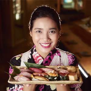 その道30年の寿司職人が江戸前の仕事を丁寧に施した自慢のネタの数々。カウンターに座って一貫ずつ味わうのがおすすめです。シャリとネタの一体感を堪能してください。