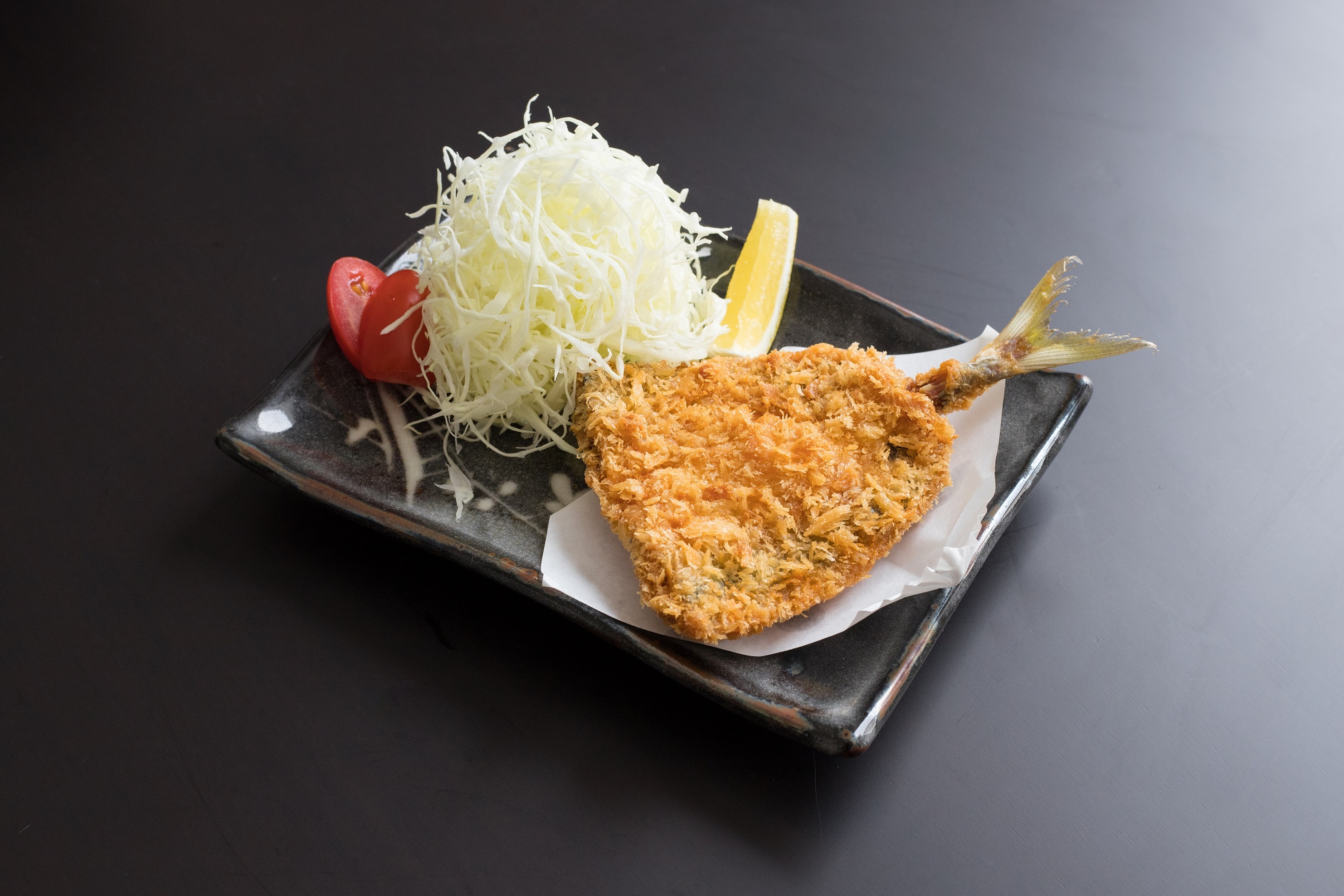 ふかふかの食感がクセになる鯵フライ(280B)。