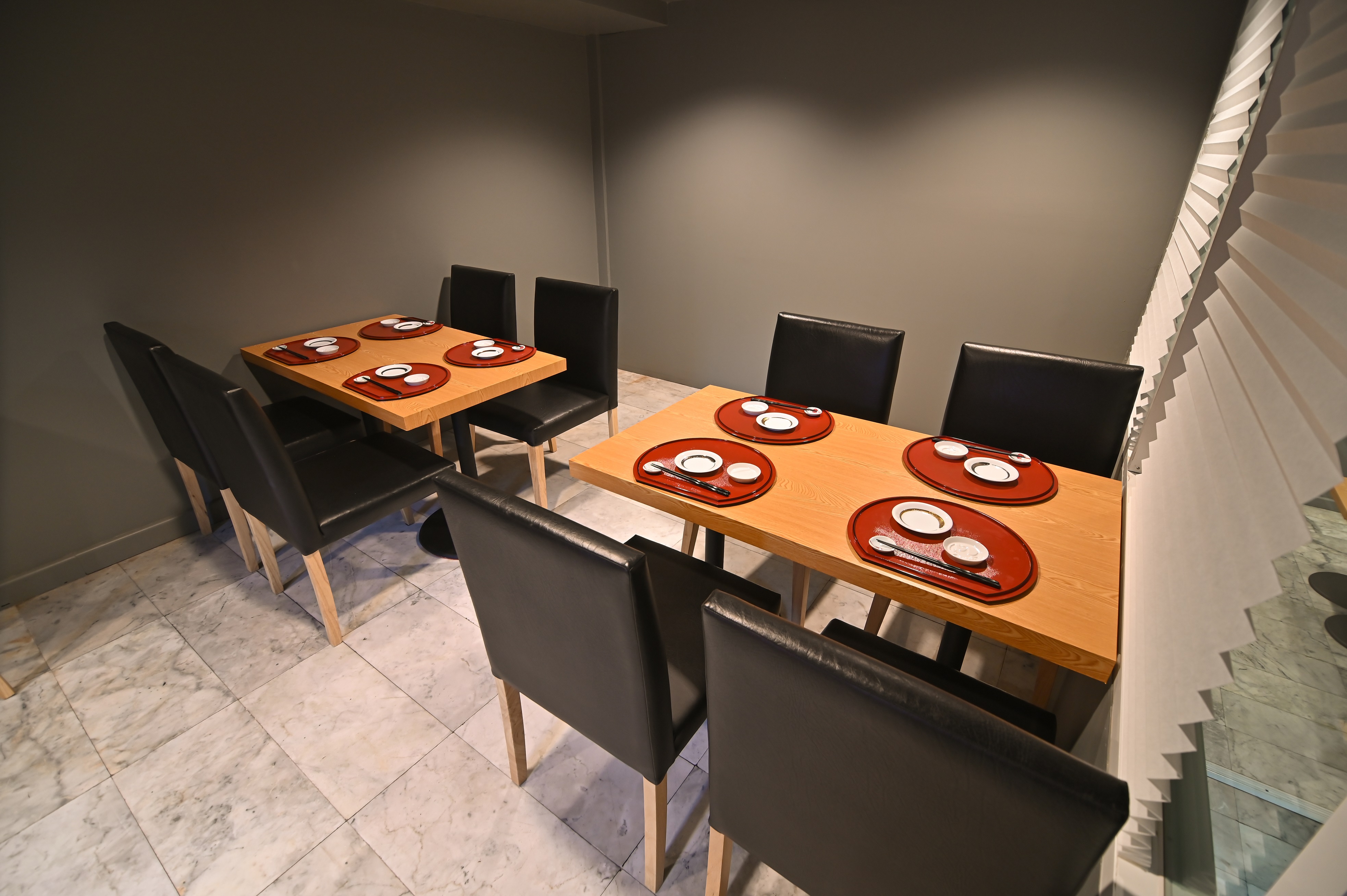 カウンター、テーブル、個室とその日の気分に合わせて。扉の閉まる完全個室は4~12名で利用可能(喫煙OK)