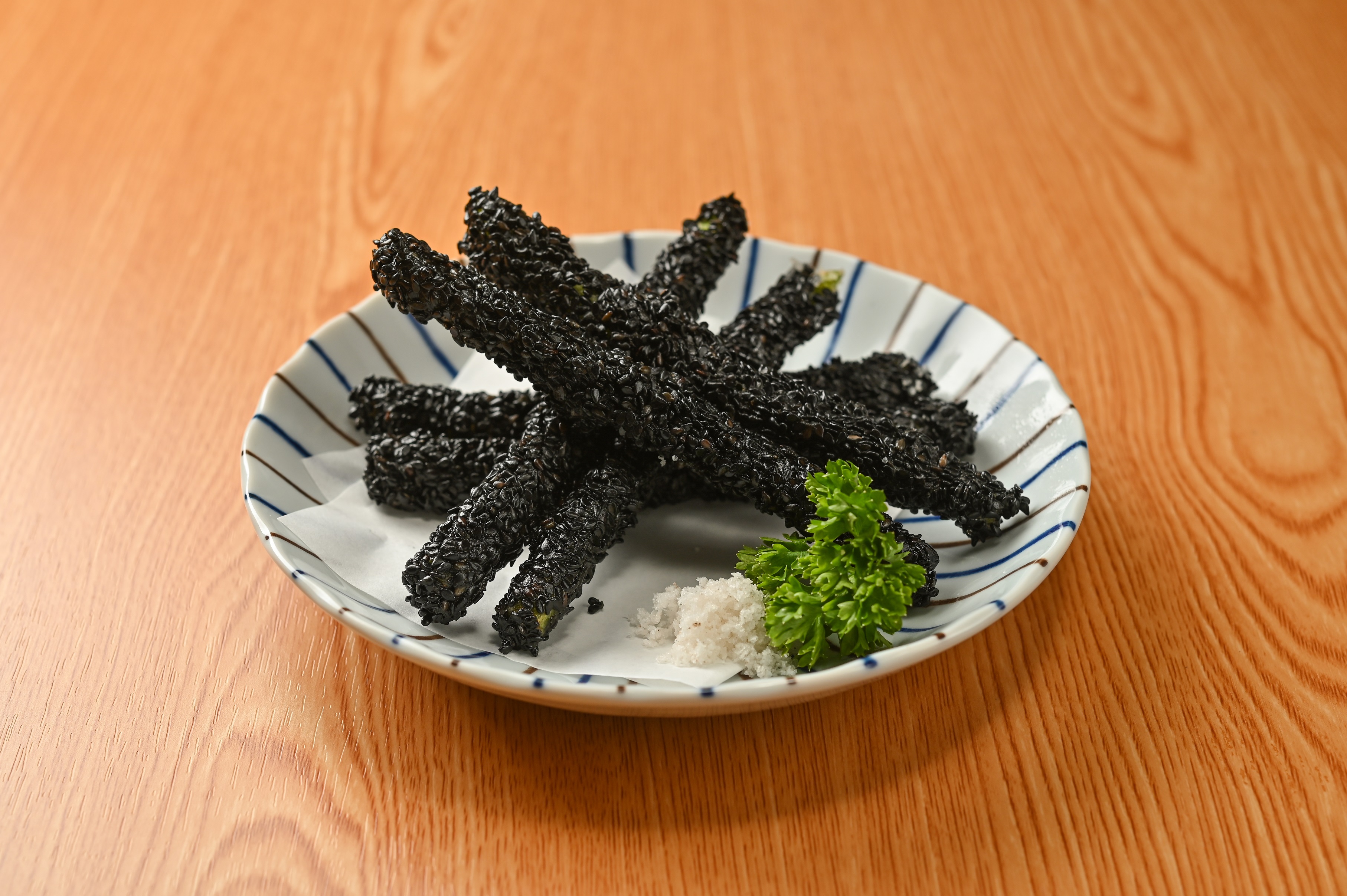 薄衣とのコンビネーションもお見事な「やわらかゴボウの天ぷら」(180B)もおすすめ。