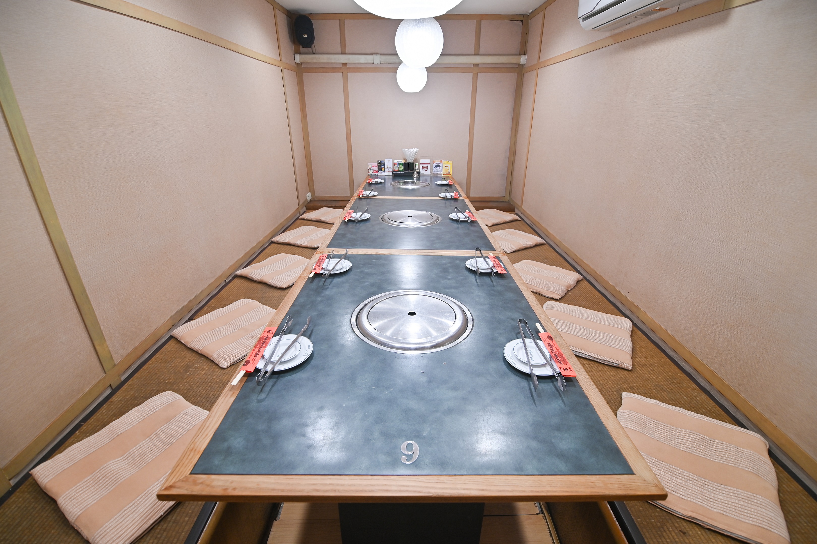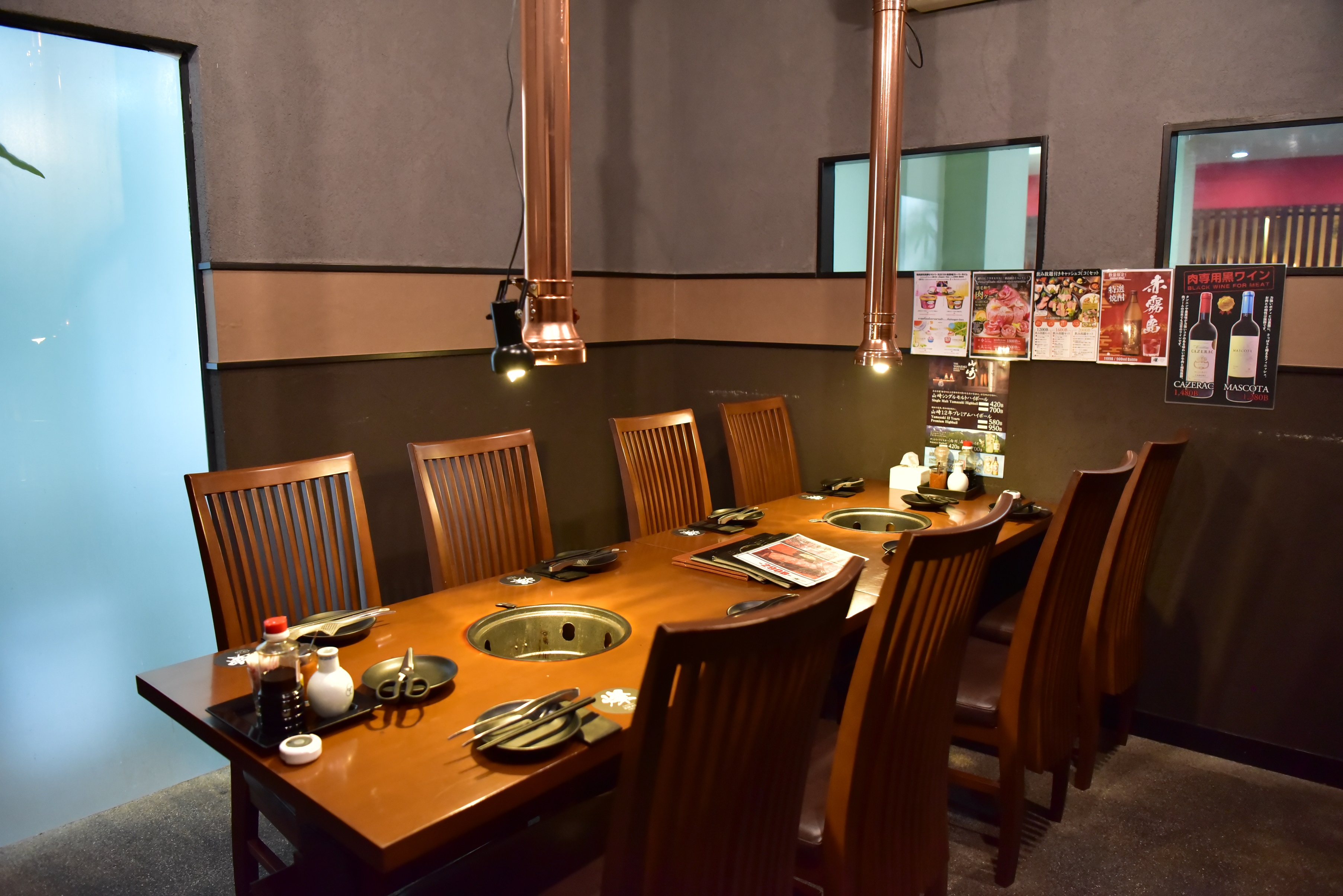 最大10 名まで座れる個室は炭火で焼肉が楽しめる
