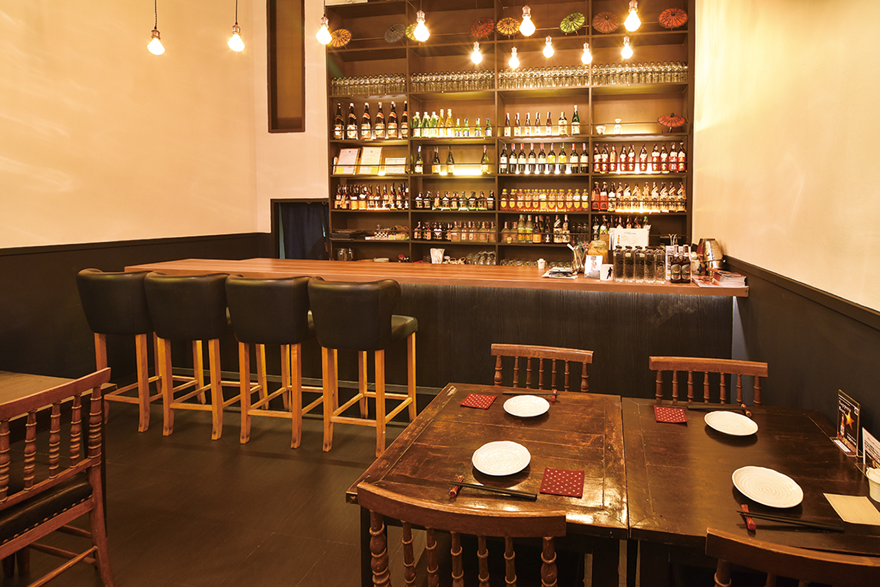 黒豚葱しゃぶしゃぶが名物の羅豚里(ラブリー)。1階はふらりと立ち寄れるアットホームな雰囲気で、カウンターに立つ女将との会話も楽しみの一つ。お手製おばんざいをつまみながらのちょい呑みにも最適。