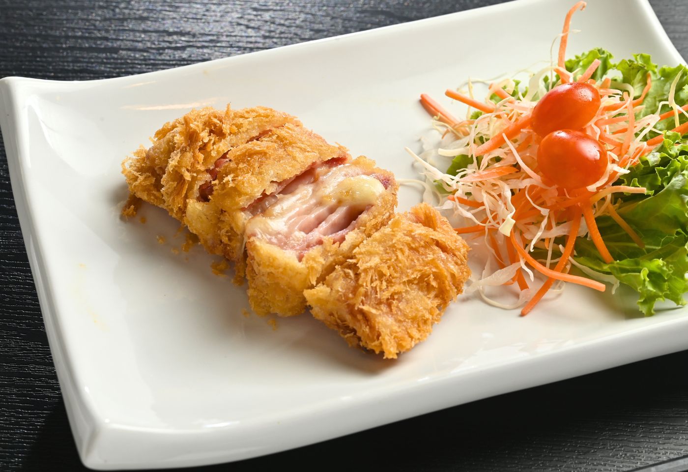 ハムとモッツァレラを何層も重ねて揚げたミルフィーユハムチーズカツ(200B)