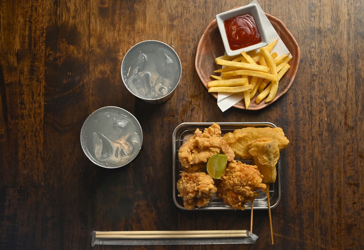 唐揚げ3ヶ、フライドポテト、レモンサワー2杯で300B