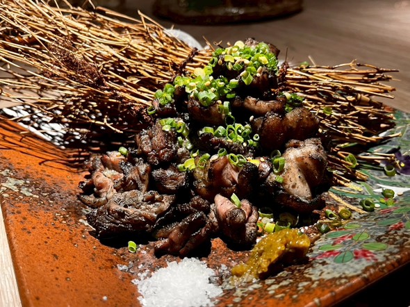 料理はすべて無添加・無化調。こだわりの「出汁」と上質な「ベートン鶏」や日本から直送される新鮮な魚介類を使った、旬を大切にした料理が並びます。名物は目の前で豪快に炎を上げて仕上げる「藁焼き」。モダンで洗練された空間で大人のひとときを。