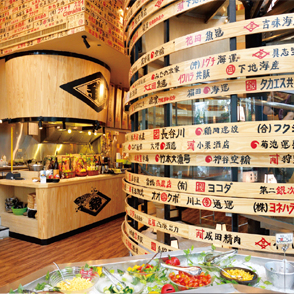 Kヴィレッジの人気店が2号店をオープン! 鮮度抜群の選べる刺身盛りが好評です。17時以降は入店から1時間、生ビール&角ハイボールが1杯50Bで何杯でも注文OK。カウンターもあるので一人でも気軽にどうぞ。駐車場、個室あり。