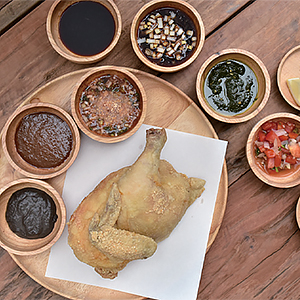 おしゃれな焼鳥カフェ”のフードトラックで有名なCMCがバンコクに上陸。名物は10種類のソースが選べる豪快なチキン「半身揚げ」。そのほか、手打ち蕎麦やオーダーメイドサラダなどヘルシーなメニューも。バー使いもOK。