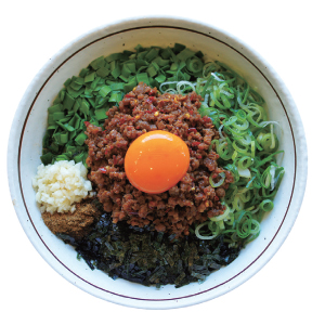 地元名古屋や東京、韓国のカンナムでも連日行列の人気店「麺屋はなび」がトンローにOPEN!味わい深いモチモチ極太麺に、たっぷりの特製ウマ辛ミンチ、卵黄を合わせた激ウマまぜそばをぜひご賞味あれ!お勧めは、名古屋まぜそば270B、トロ肉炙り麺300B。