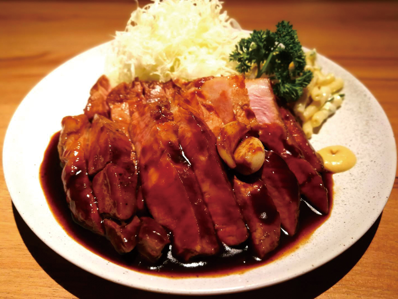 準備した柔らかジューシーなトンテキは、まるで牛肉を食べているかのよう。