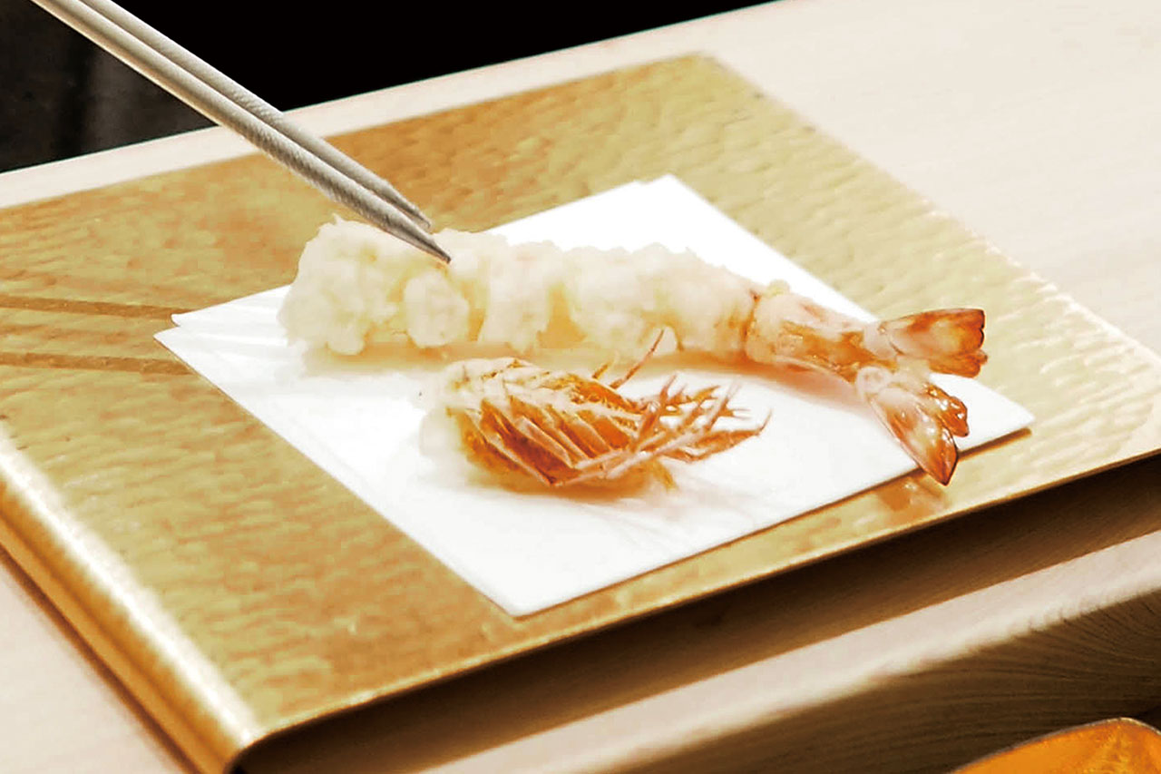 腕を振るう「銀座 天春」。選び抜いた旬の素材を匠の技術で揚げ、おまかせコースで提供するのが基本