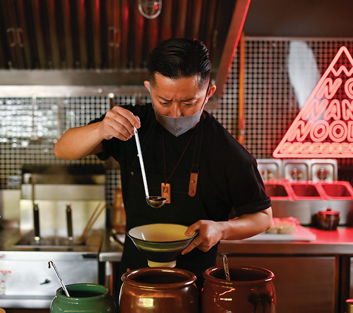 渡タイ後は日本料理店「天翔」(近日再オープン予定)、六九麺バンコクの立ち上げのお手伝いをし、やがて自分でやりたい気持ちが膨らんできた。ただ独立にあたっては、技術も知識も足りないと、一度日本に戻って全国の気になるラーメン屋に足を運び、頼み込んで働かせてもらったりもしました。弟子入りは芸人時代からの得意技なので(笑)。そうして完成させたのが、クラシックな中華そばの考えをベースに、最高の素材と最先端の技術で再構築した一杯です。モノづくり大国としてタイに技術を伝え雇用を生んだ日本も、最近は少し元気がないように見えます。ラーメン作りを伝えることで回復の一助になれば嬉しいし、タイに来た日本人として少しは意味があるのかなって。そんな風に感じてます。自身のラーメンの追求と現在コロナ禍で閉店している天翔の再オープンに向けて邁進します。