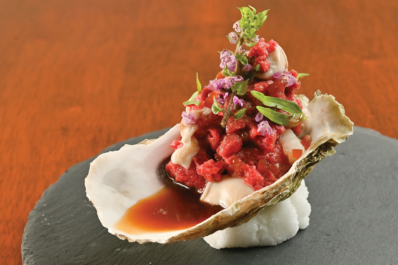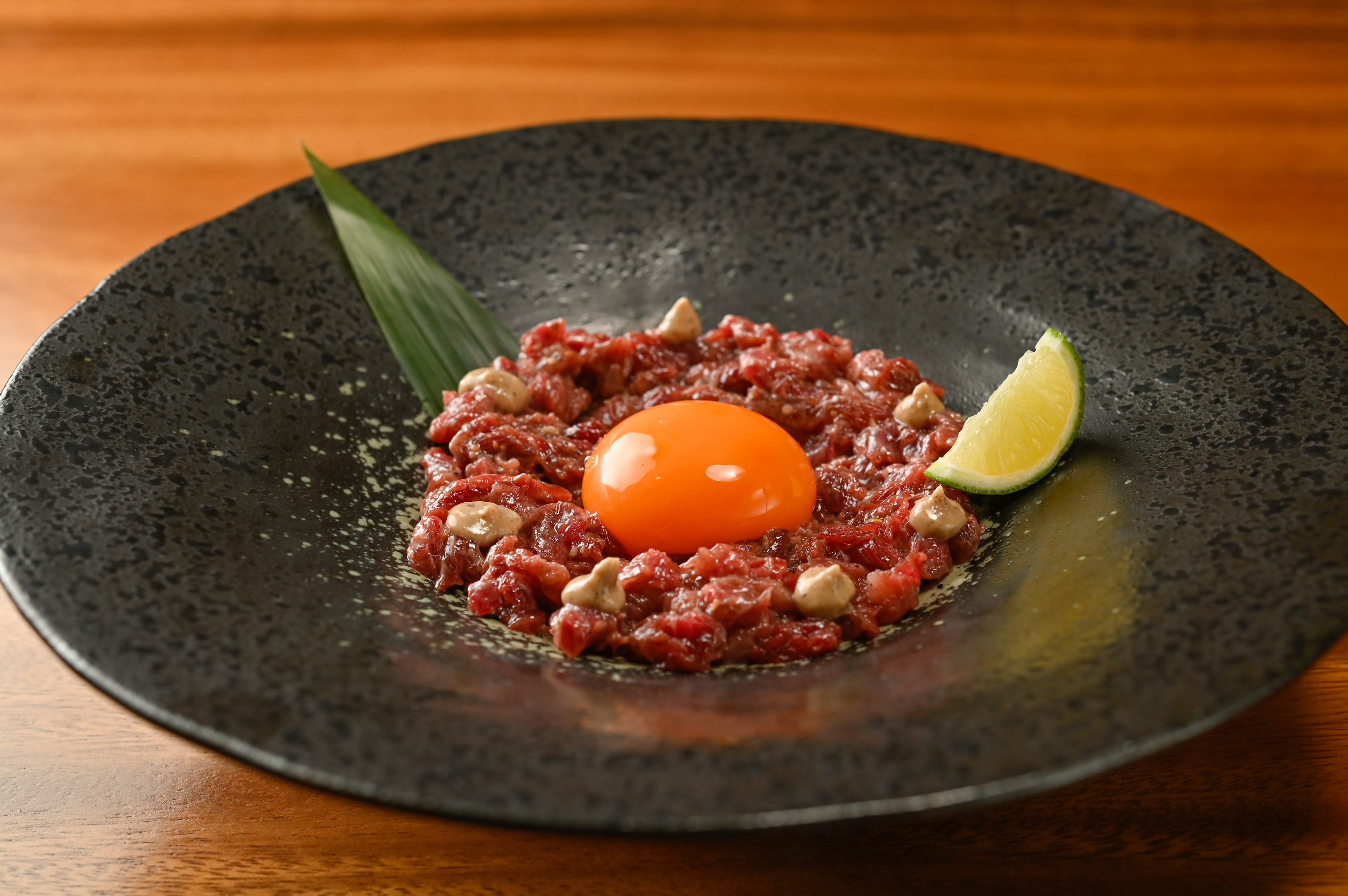 フランス伝統料理のタルタルを近江牛で贅沢に。自家製ポン酢の清涼感も◎