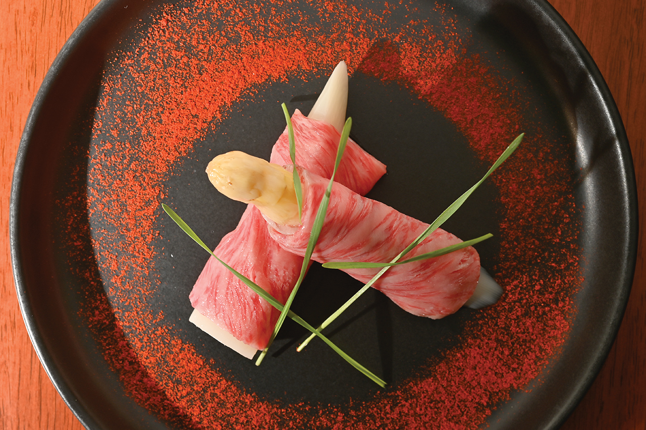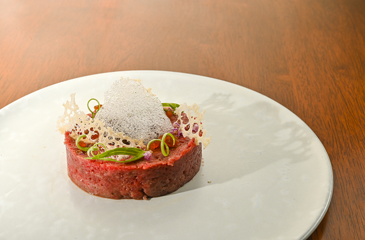 微細に挽いたパン粉をまとわせた和牛を極レア仕立てに、肉汁と旨みを閉じ込めた逸品