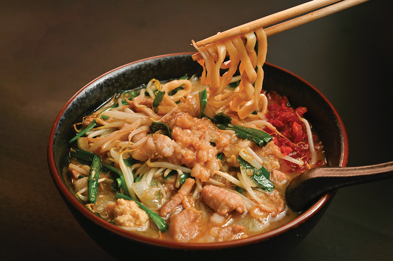 多くのメニューの中でもイチオシのガッツリ系。豚骨醤油スープにパンチの効いた具材が盛り沢山